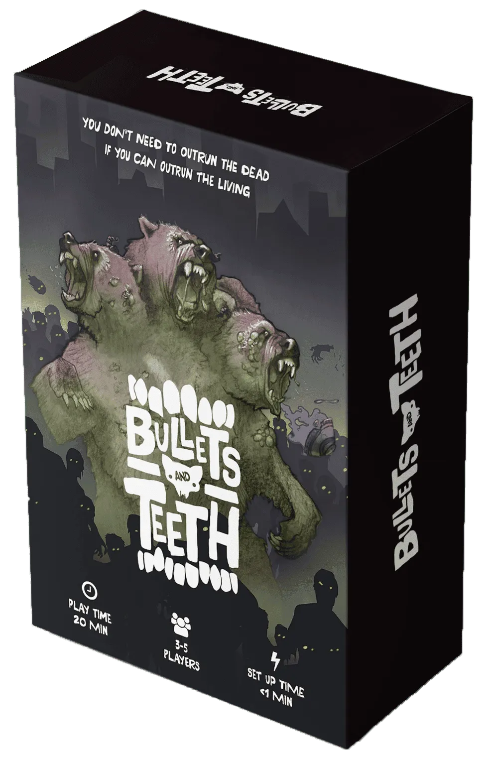 Second petit jeu de la semaine pour laquelle nous avons de la sympathie. Bullets and Teeth nâest certes pas un jeu pour stratĂšges mais sâannonce comme un jeu dâambiance fort sympathique oĂč le thĂšme de la survie post-zombies sert de prĂ©texte Ă se pourrir encore et encore. Un jeu simple, sans prĂ©tention ; mais qui semble bien fonctionner et gagner en plus en qualitĂ© quand le nombre de joueurs augmente (de 3 Ă 5 joueurs). Dommage, par contre, de ne pas avoir su mieux animer la campagne qui est, du coup, restĂ©e Ă©trangement amorphe.