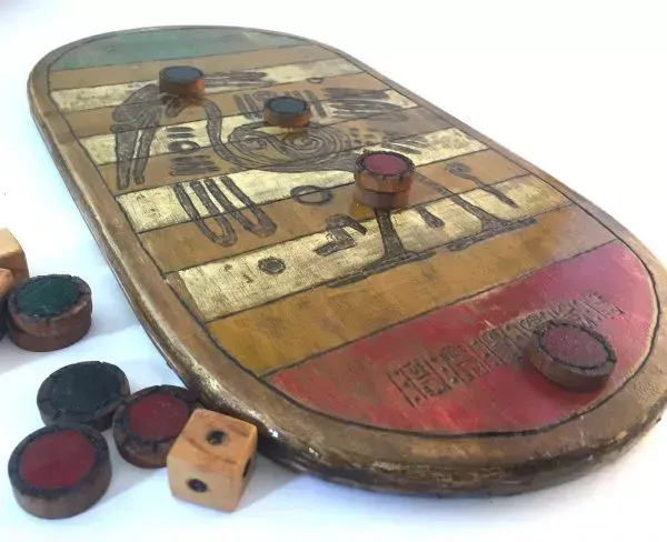 Mais parlons un peu de ces diffĂ©rents petits jeux, qui sont tous des jeux abstraits Ă deux joueurs. Tout dâabord dans Puluc vous devrez sauter dâune ligne Ă lâautre afin de tenter de capturer une piĂšce adverse et la ramener dans votre camp. La spĂ©cificitĂ© de ce jeu se situe dans des petits tokens en forme de maĂŻs que lâon lance afin de dĂ©terminer le nombre de mouvements dont on dispose Ă ce tour. Une petite touche de hasard donc dans un jeu abstrait, câest assez rare pour ĂȘtre signalĂ©.