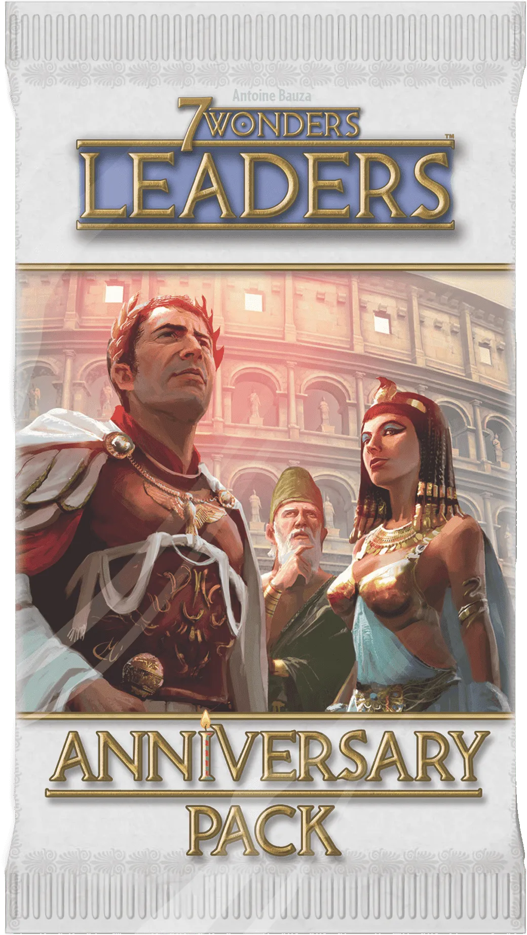 7 Wonders: Leaders adds 42 new cards to the base game of 7 Wonders, comprising four new guilds, one new wonder card, and 36 (+1 blank) white âLeaderâ cards. At the start of the game, each player takes a hand of four leaders and may play one at the start of each of the three Ages. Unlike the standard cards, leaders cost money (not resources). The expansion comes with a new Wonderâthe ancient city of Romeâand contains 6-gold tokens made of cardboard for more efficient money-management.
