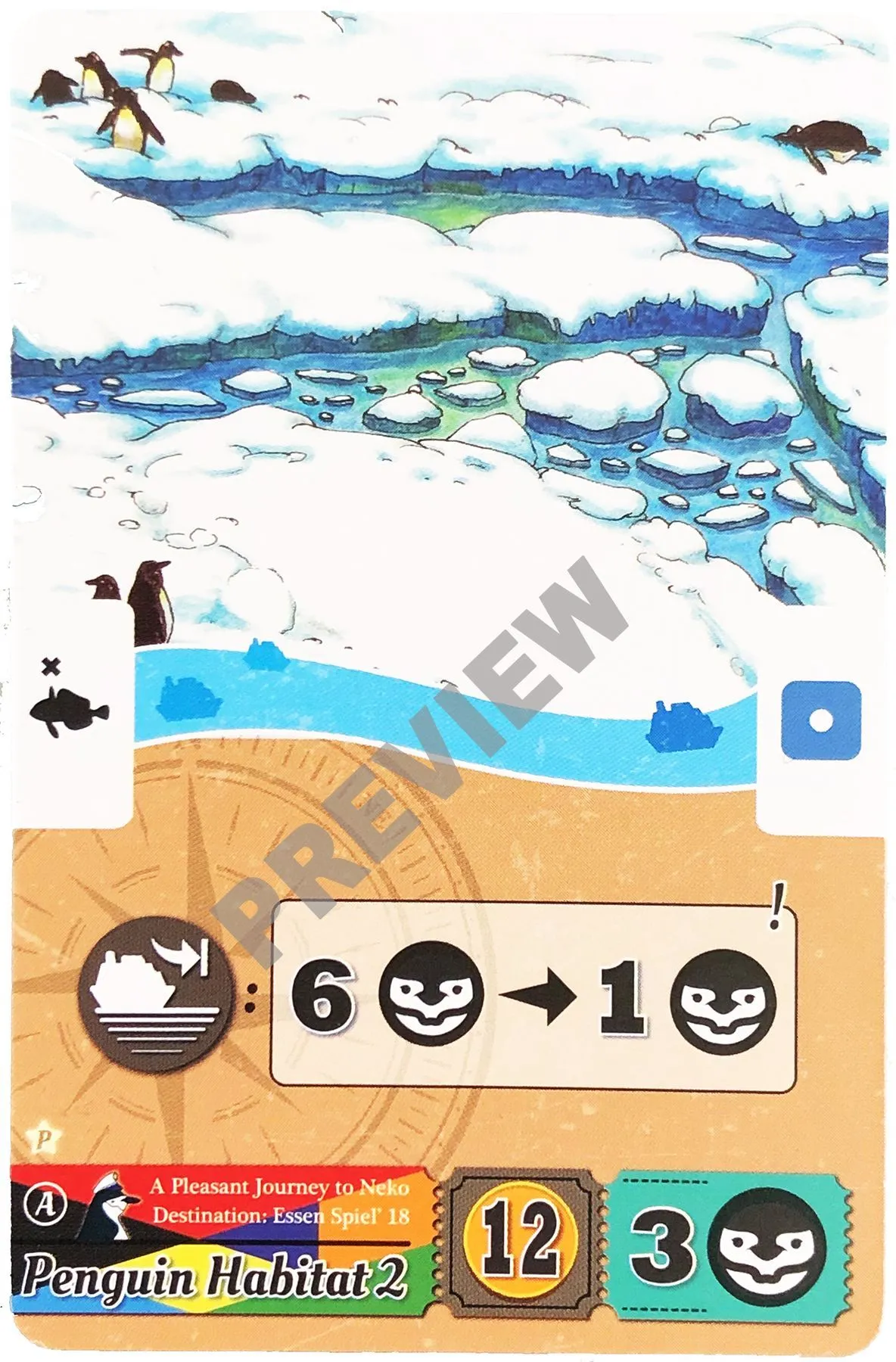 You and your friends have decided to journey to the Antarctic harbor of Neko in hopes of seeing the cute penguins living in the backdrop of the stunning glacier landscape. To get to Neko smoothly, you each try map out the stops along your journey in order to see the most penguins. Your chances improve the farther your ships travel, the more harbours you visit, and the more goods you deliver. But avoid doing things that interfere with the Antarctica ecology and cause the penguins to move away! Will you be the one that sees the most penguins?