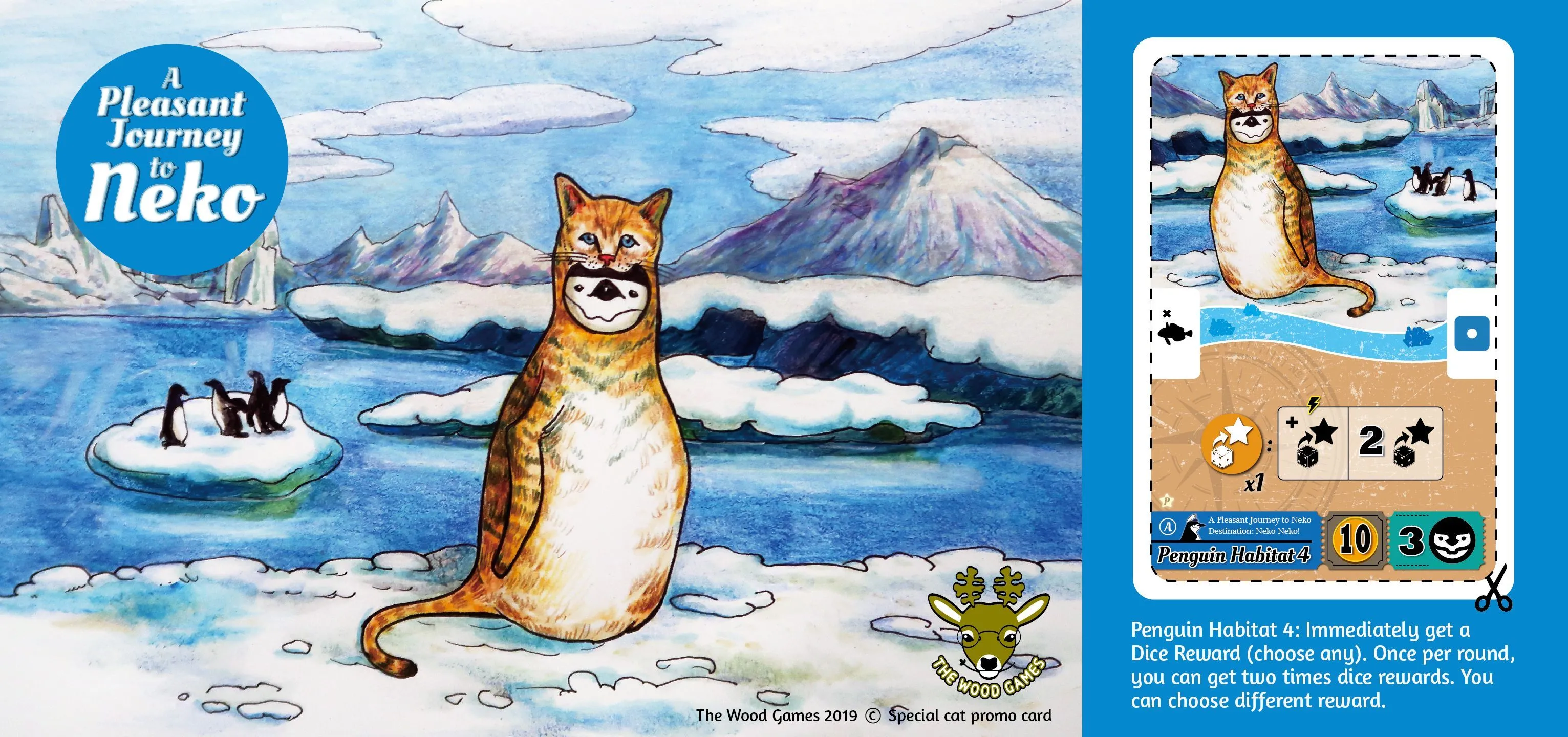 A Pleasant Journey to Neko has a unique dice drafting mechanism and card laying system. Over a hundred card combinations exist, making each game different and surprising. Also, don’t forget about the advance mode, where you will face more challenges on your way to Neko. Are you ready to go see the penguins? We wish you a pleasant journey to Neko!