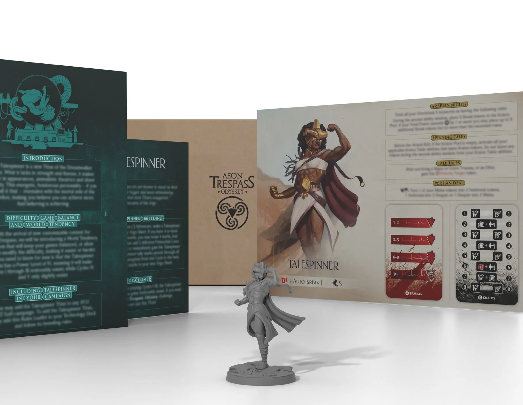 Aeon Trespass: Odyssey is a 1-4 player campaign game about adventures, exploration and fierce battles with giant monsters. It’s a co-operative, choice-driven boardgame experience played over multiple sessions. Set in an alternate Antiquity, where a reality-shattering cataclysm killed the Olympian gods and unleashed the otherworldly Primordials, Aeon Trespass: Odyssey places the players in the roles of Argonauts, the only people who can fight off the darkness and make things right.