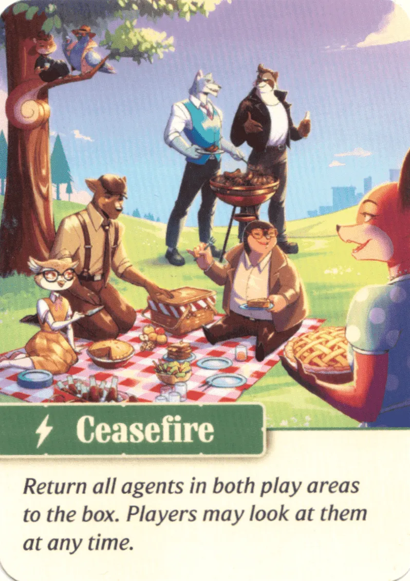 Magnifiquement illustré par Fanny-Pastor Berlie, le jeu donne vie à un quartier excentrique d’animaux espions. Le jeu comprend plus de 50 cartes, un plateau de jeu personnalisé et des meeples.