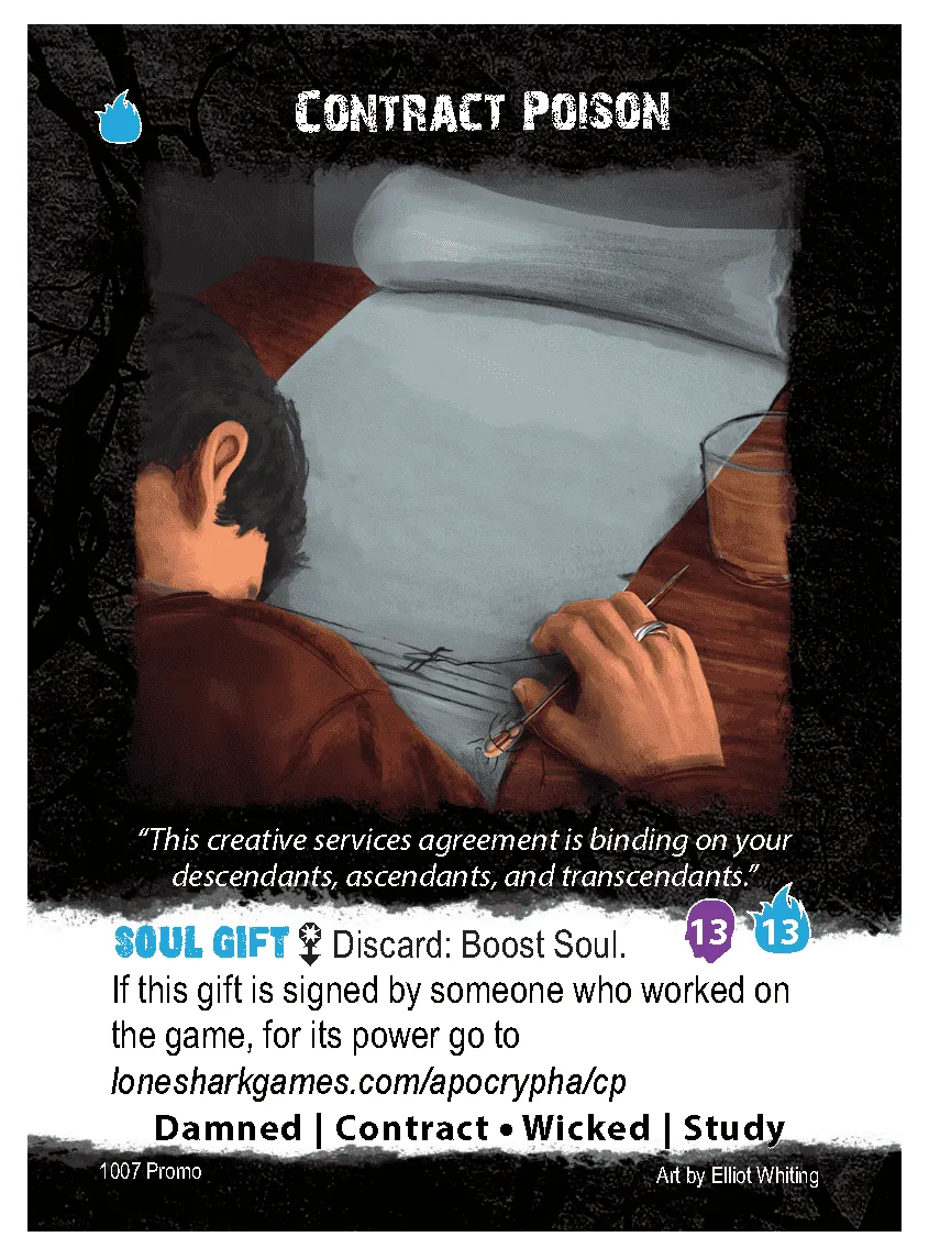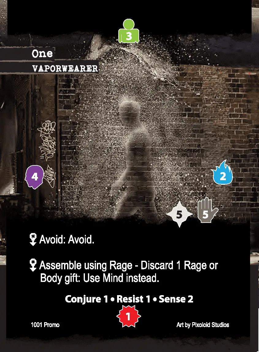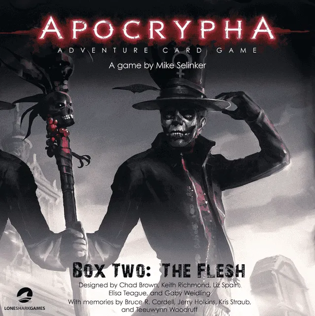 The Apocrypha Adventure Card Game allows you to play it as a cooperative card game, or with a game master as a role playing game. The world is on the brink of an apocalypse, set in motion by monsters only your characters can see. Gameplay is story-based, and features deck construction and character growth. Over time, characters will unlock repressed memory fragments that will add new powers. Each mission has a unique setup and goal, which often involves hunting down a true threat hiding among the cards at the nexuses that characters investigate.
