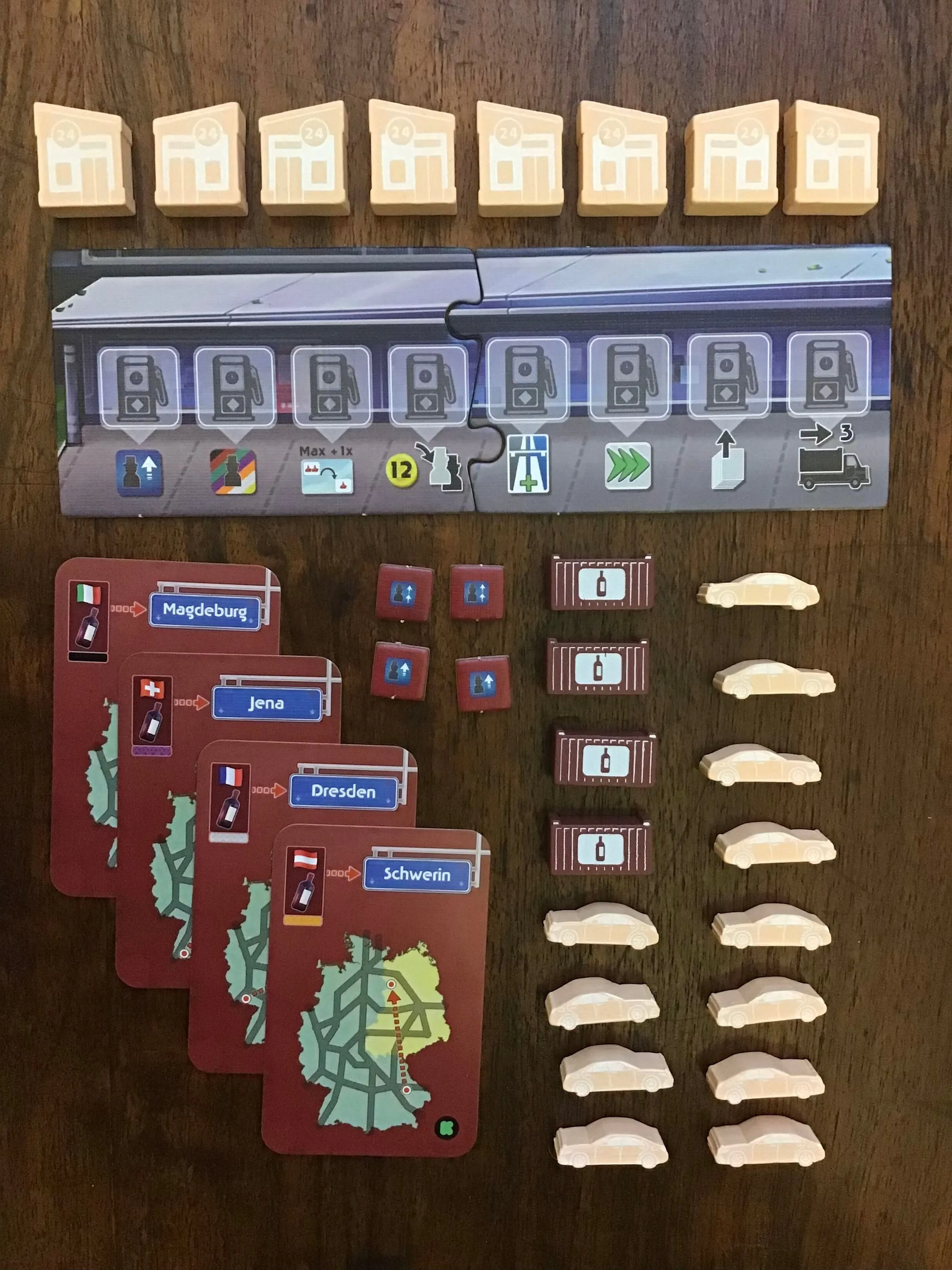 Etendez le réseau autoroutier, supervisez différents projets et donnez des promotions à vos employés pour optimiser votre stratégie et contribuer au développement de l’Autobahn. Améliorez votre plateau joueur pour avoir accès à de nouveaux services et vous ouvrir différents chemins vers la victoire : développer les célèbres Autobahnen allemandes, exporter des marchandises avant les autres joueurs ou fonder un empire de stations-service! À la fin de la deuxième période (en 1990), l’unification ouvre des possibilités d’étendre davantage le réseau dans la partie orientale du pays. En tant que directeur au sein de l’organisation Bundes Autobahn, vous êtes chargé de gérer et de développer le réseau routier fédéral allemand. Outre la construction de routes, vous serez également chargé de faciliter le transport de marchandises vers les pays voisins et de construire des stations-service pour profiter de ce nouveau trafic. Au fur et à mesure que vous contribuez au développement du réseau, vous gagnez des sièges au sein des conseils d’administration de chaque autoroute, qui augmenteront votre budget au début de chaque période. Au cours du jeu, les membres de votre conseil d’administration finiront par accéder à des sièges plus prestigieux au sein du bâtiment de la Bundesautobahn, ce qui vous procurera des points de victoire à la fin de la partie. Planifiez à l’avance pour optimiser votre efficacité : Chaque contribution que vous apportez renforce votre réputation et vous donne accès à de nouveaux départements et à des possibilités de marquer des points qui s’alignent mieux sur le chemin de la victoire que vous avez choisi. Les cartes que vous avez en main vous permettent d’entreprendre des actions sur l’une des 7 principales Autobahns. Vous devrez planifier soigneusement et chronométrer parfaitement vos actions si vous voulez tirer le meilleur parti de votre main avant de devoir récupérer vos cartes.