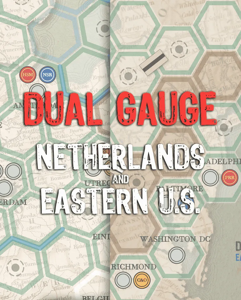 The title Dual Gauge refers to the fact that there are two kinds of track - standard gauge and narrow. Standard is more expensive and more efficient, while narrow gauge is cheaper and rather inefficient. These rectangular track tiles are laid across adjacent hexsides, and all companies are able to utilize a shared track network provided they are connected to it. Different types of track will of course call for different types of trains. Stock purchases put funds in the company coffers, and the company uses this money to pay for track. Trains, on the other hand, are paid for in stock value itself. Those trains can also be “rusted” by the purchase of newer models. Companies can also “token” station spaces on the map, increasing their routes while potentially blocking access for rivals. These, too, are paid for in stock value, by decreasing that value by an entire row in the game’s capricious two-dimensional stock market.