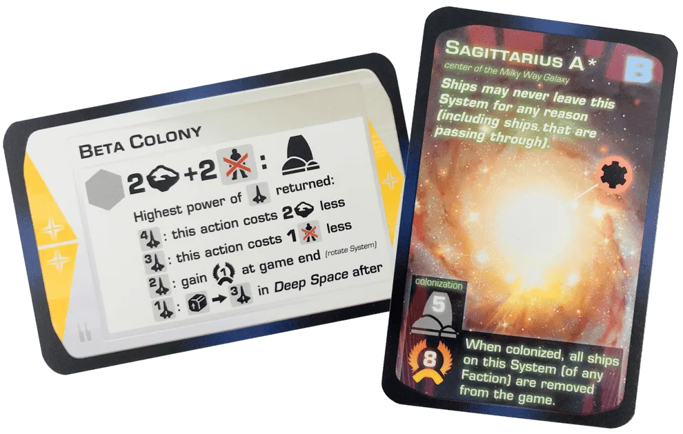 Ainsi, les joueurs créent leur propre arbre technologique dans chaque partie, en utilisant ces actions pour augmenter leur force militaire, pour sauter vers différents systèmes exoplanétaires habitables, pour coloniser ces systèmes, pour augmenter leur production de ressources, pour développer une technologie androïde qui permet une croissance sans population, et plus encore.