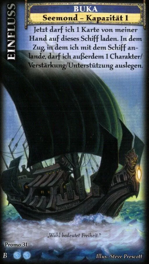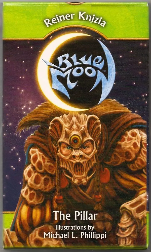 Blue Moon is a card game for two players, which has often been compared to Magic: The Gathering, although it has considerably different game mechanics. Particularly, it is not a CCG: There are no random cards in any expansion. It can thus be regarded as the first LCG, although it doesn’t use that term yet.
