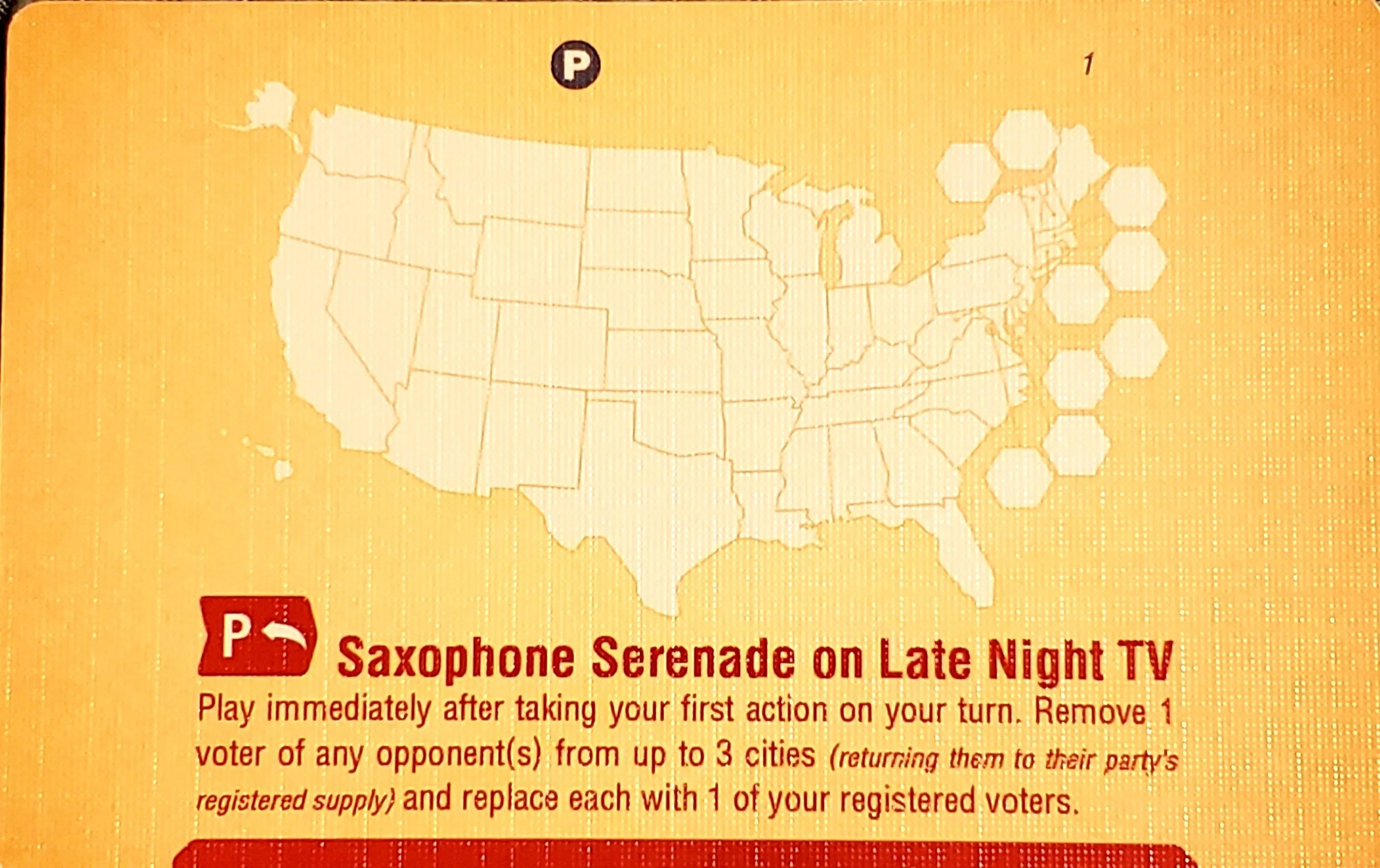 Campaign Trail uses card driven actions to implement your strategy. Your goal is to have the most voters for your party in enough states to win a majority of electoral votes. If you have the most voters in a state you are awarded that state’s electoral votes (victory points). At the end of the game the player with the most electoral votes wins and is declared the president!