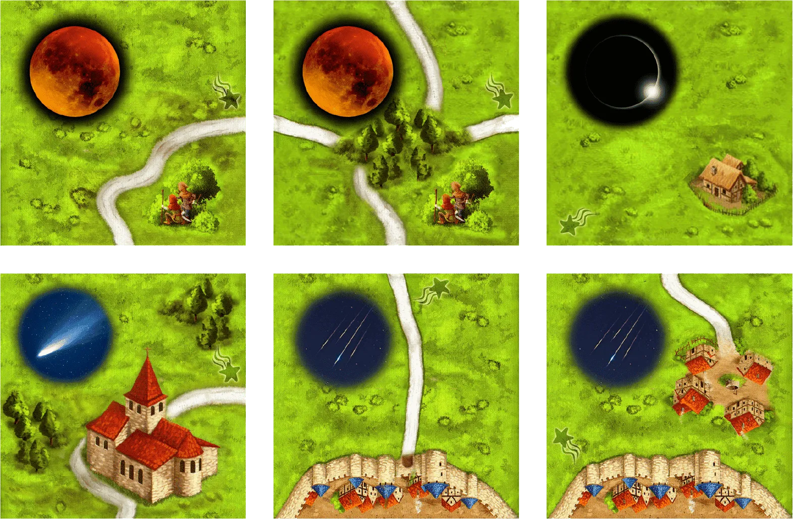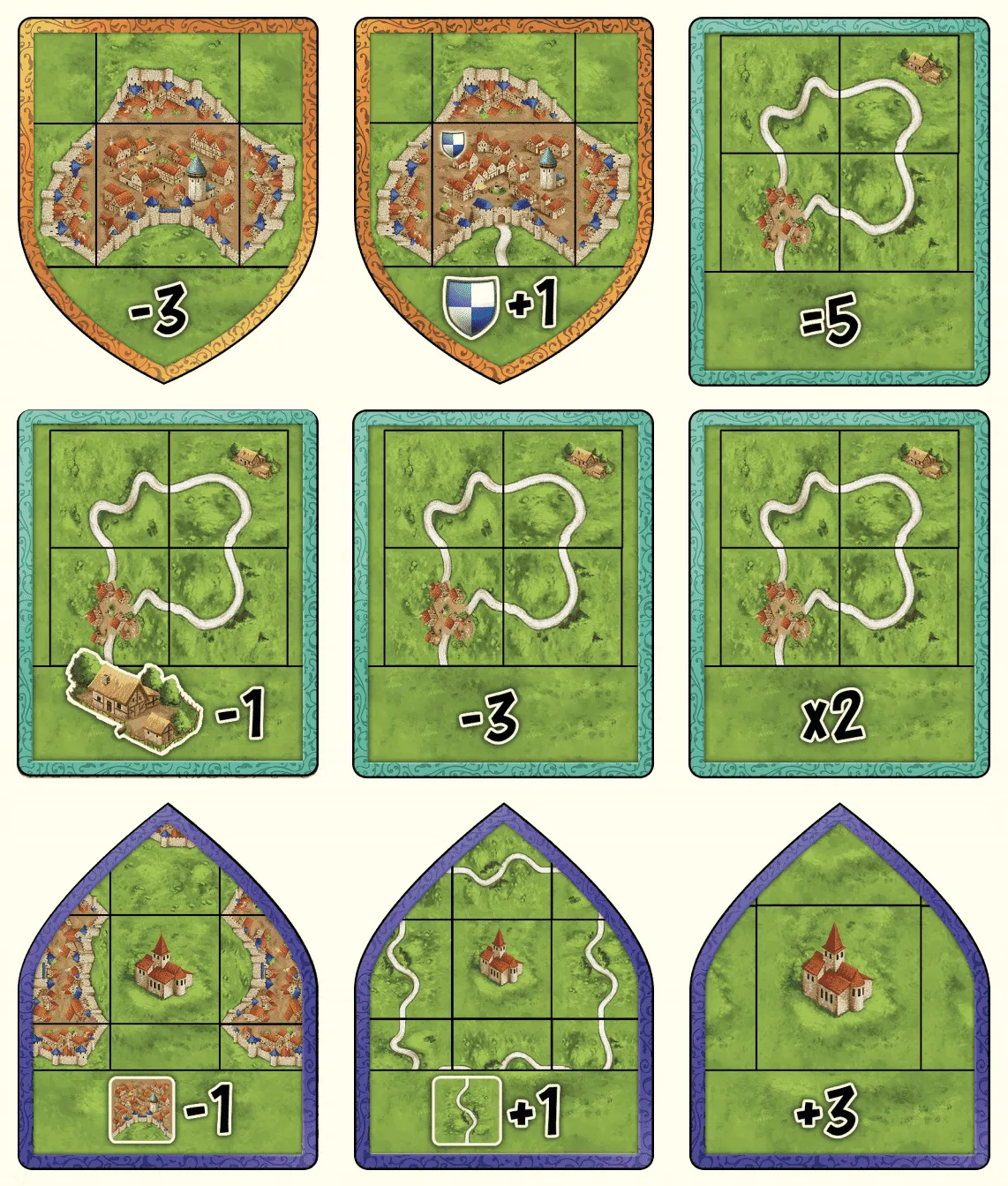 Lorsque toutes les tuiles ont été jouées, le jeu est terminé. Le paysage ainsi constitué reste figé et le décompte des points peut s’effectuer.