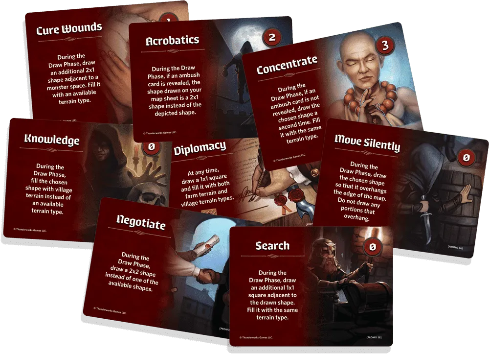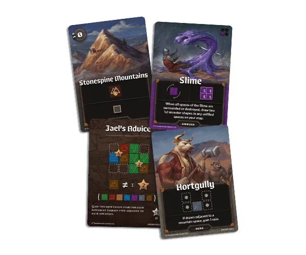 In Cartographers: A Roll Player Tale, players compete to earn the most reputation stars by the time four seasons have passed. Each season, players draw on their map sheets and earn reputation by carrying out the queen’s edicts before the season is over. The player with the most reputation stars at the end of winter wins!