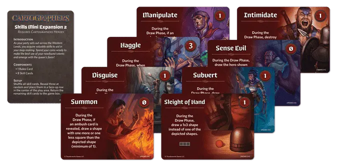 Queen Gimnax has ordered the reclamation of the northern lands. As a cartographer in her service, you are sent to map this territory, claiming it for the Kingdom of Nalos. Through official edicts, the queen announces which lands she prizes most, and you will increase your reputation by meeting her demands. But you are not alone in this wilderness. The Dragul contest your claims with their outposts, so you must draw your lines carefully to reduce their influence. Reclaim the greatest share of the queen’s desired lands and you will be declared the greatest cartographer in the kingdom.