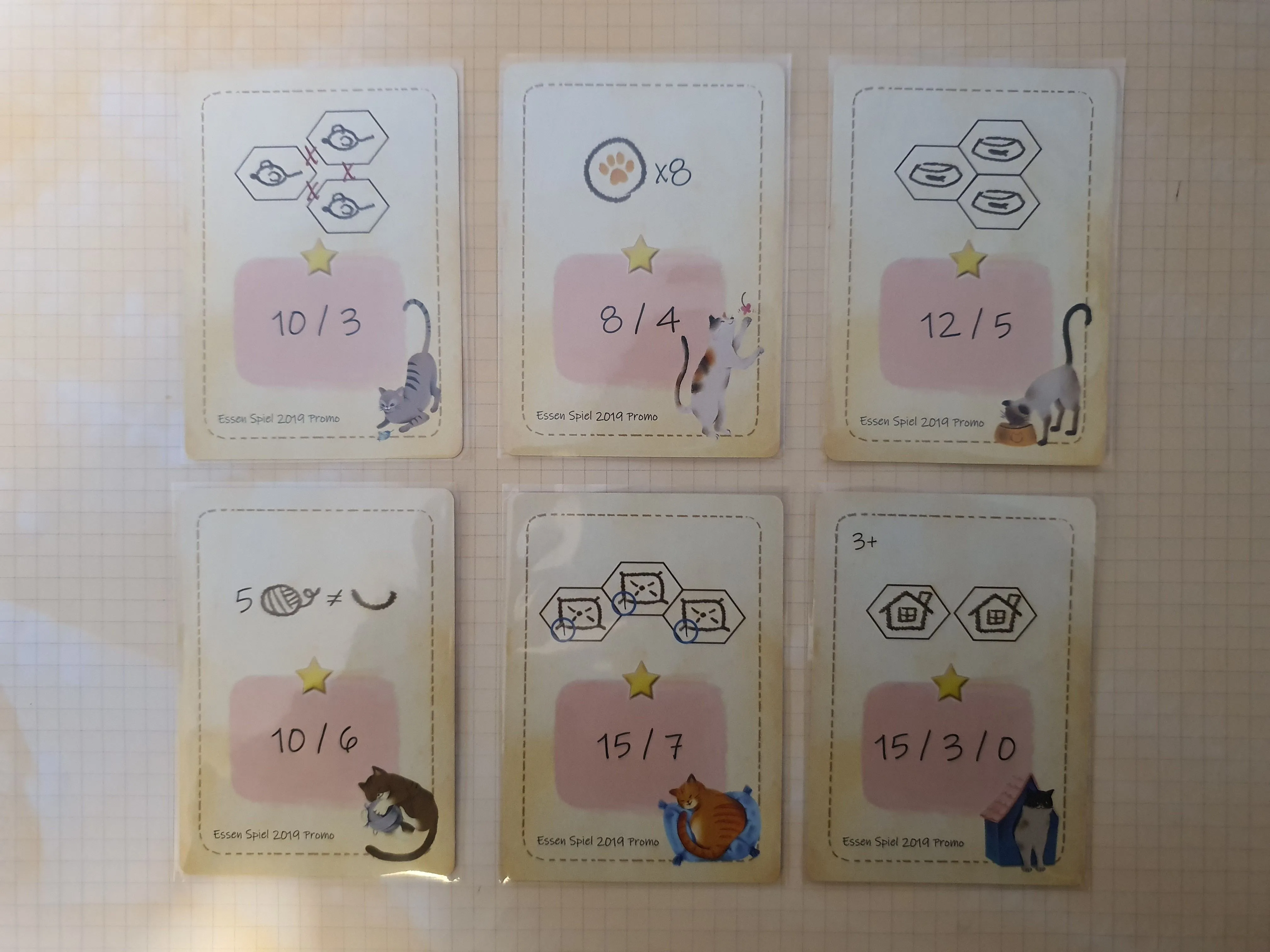 Placing each toy in a particular position is important as it gives a player points in specific ways. Place a bowl next to different and unique other toys, or place a cushion high up so that cats can sleep and watch from high up, or even give the cats yarn to play with, giving you potential majority scoring.