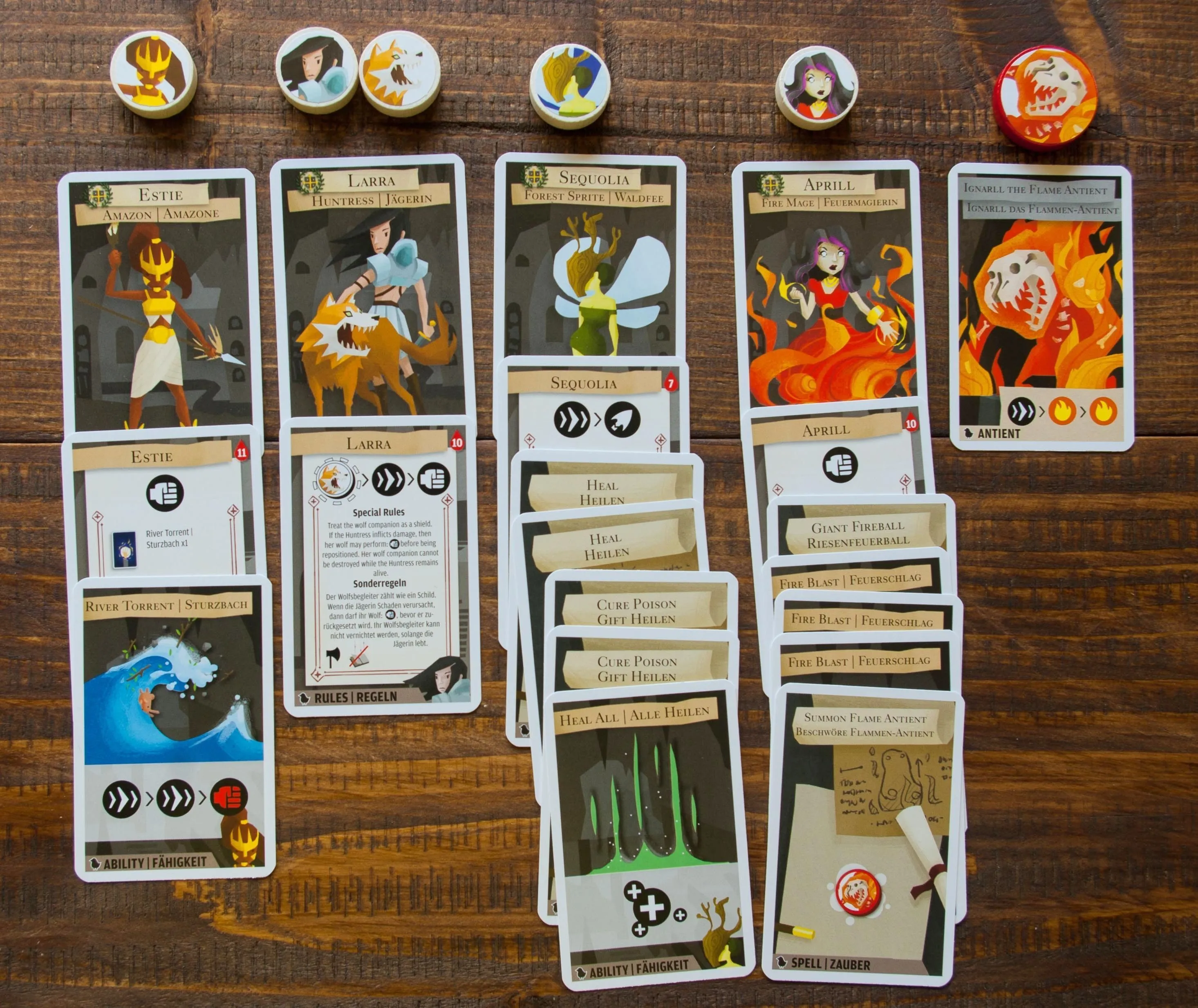 In more detail, in Catacombs players flick wooden discs that represent the monsters and heroes. Contact with an opposing piece inflicts damage, while missiles, spells, and other special abilities can cause other effects. When all of the monsters of a room have been cleared, the heroes can move further into the catacomb.