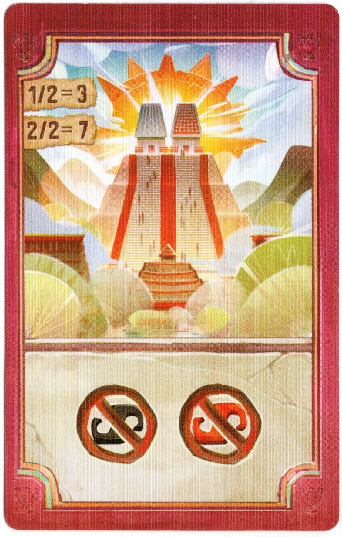 The game end is triggered when one player finishes their third CĂłatl. Players receive points for fulfilling objectives, and the one with the most is named the new High Priest!