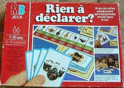 One player takes on the role of Customs Agent (this rotates, though) while the others are all travelers who truthfully or falsely declare items in their luggage (four cards drawn from a deck of items including wine, cigars, cameras, necklaces, etc.) If the Customs Agent believes them, they simply pay a duty fee and then the next player repeats the process.