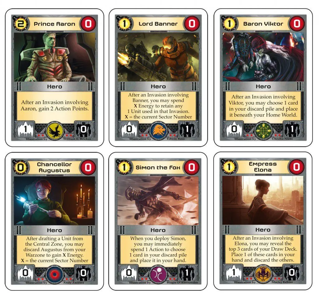 Each player controls a barbarian Star Empire represented by many cards. Throughout the game, players will invade Worlds and draft new Units and Tactics into their Empires. Each card lists its Empire Points in the upper right corner. The player whose Empire contains the most Empire Points at the end of the game is the winner!