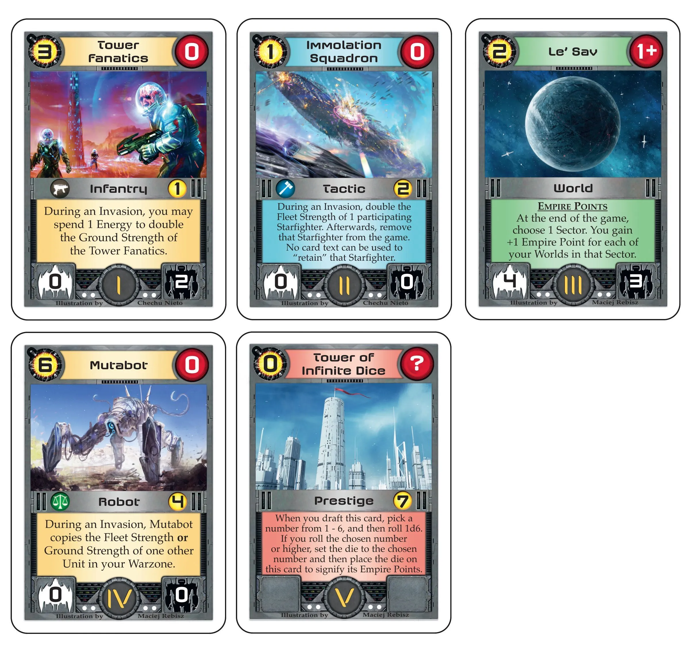 • Ground Strength: Each World possesses a Ground Strength that represents the infantry and other ground forces that defend it from surface assault. A World’s Ground Strength must be matched in order for it to be successfully invaded. Many Units possess a Ground Strength that a player can use to invade a World.