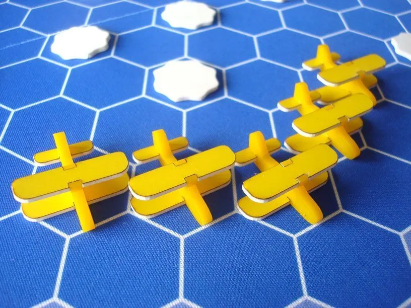 Expansion (per extra player): 5 biplanes (orange or yellow), 20 altitude counters, carrying case. Please indicate colour if you purchase one set only. You can see the biplanes in the pictures below.