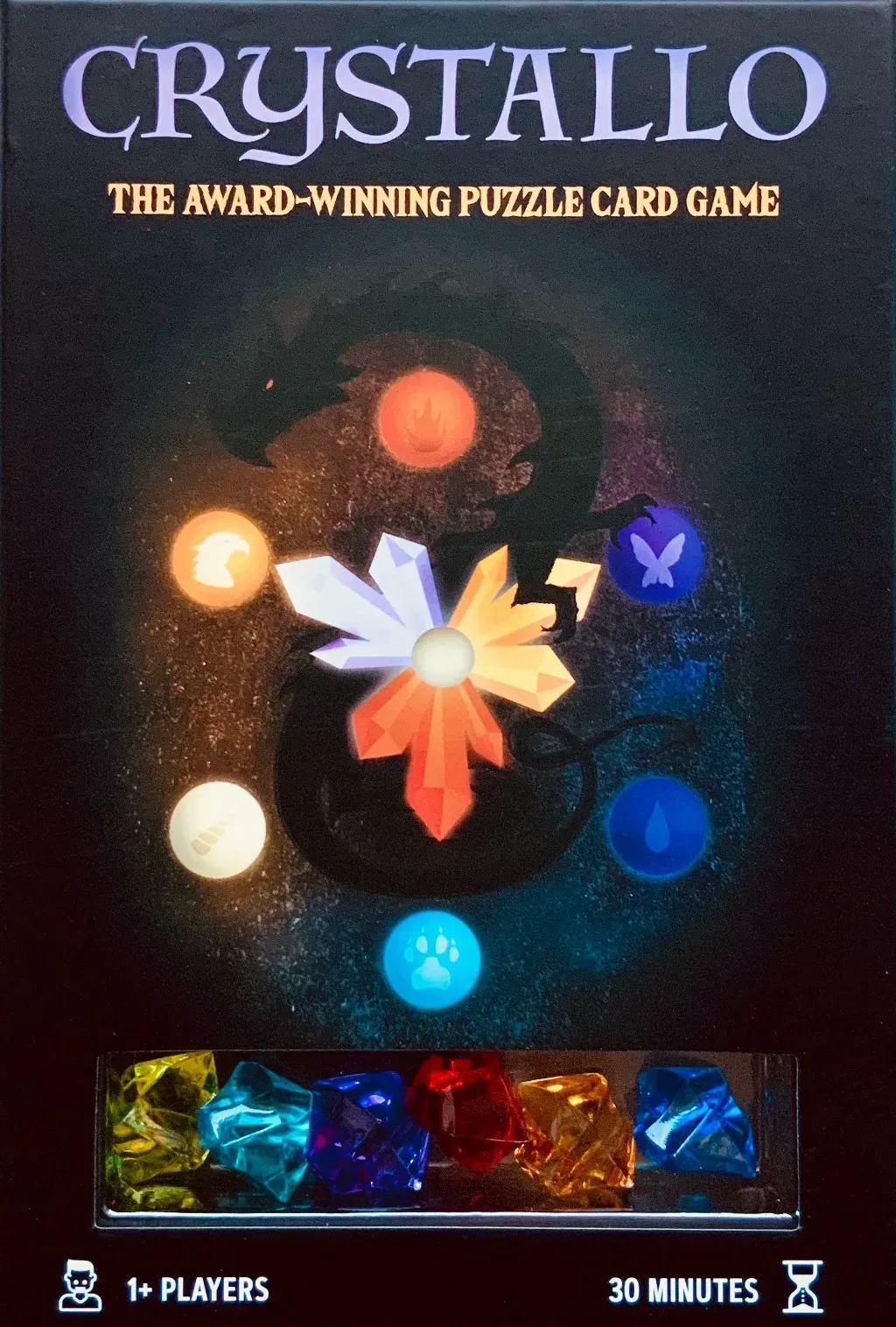 Crystallo se joue avec un jeu de 54 cartes illustrées et 18 gemmes, et une partie dure environ 20 à 30 minutes.