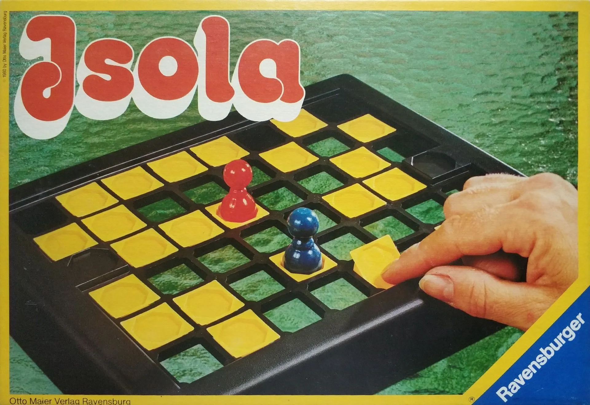 In Isolation, the “Don’t Get Stranded” game, the board is a 6x8 grid of removable squares. On your turn, you move your pawn one space, then remove a square. The object is isolate the opponent so they cannot move.
