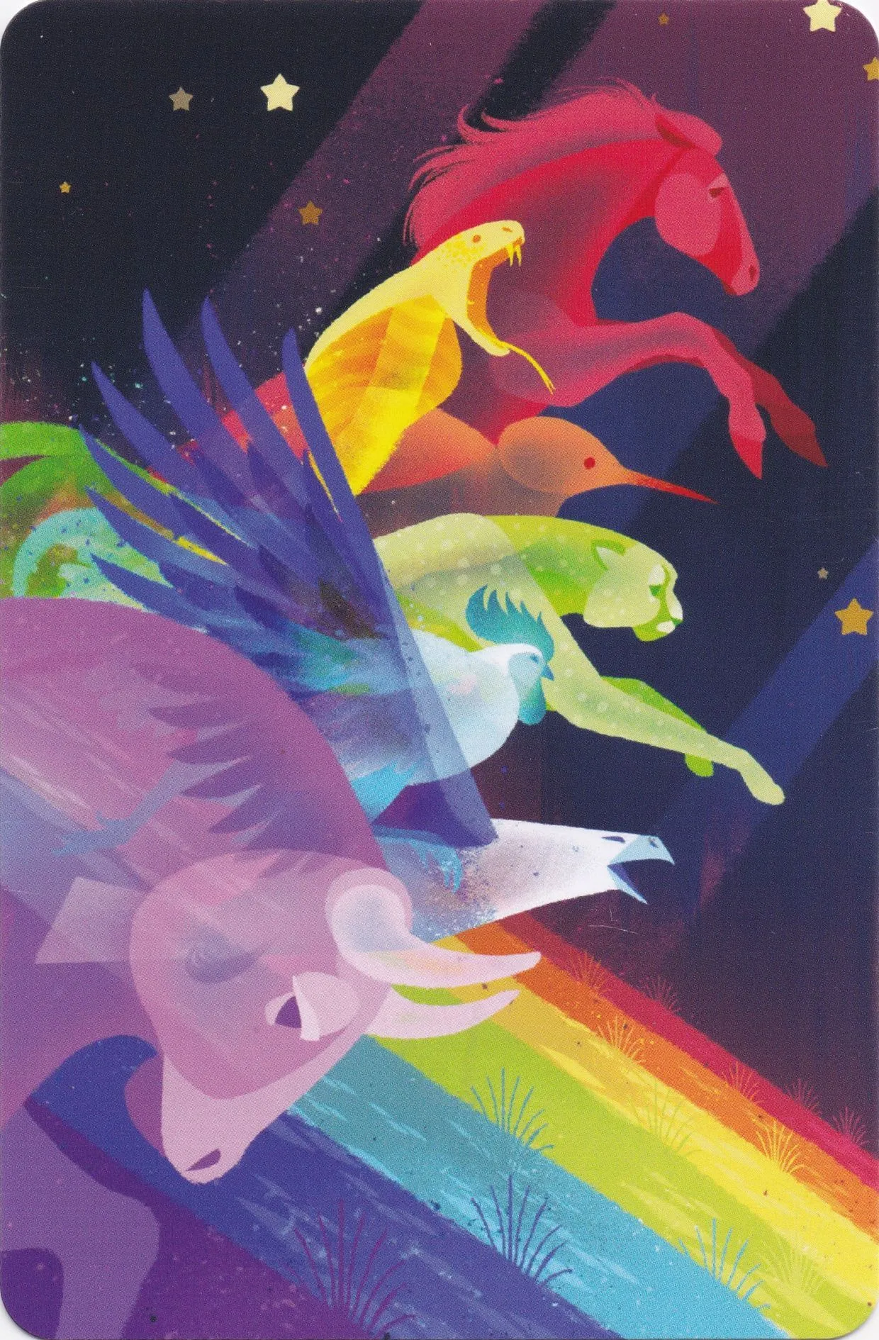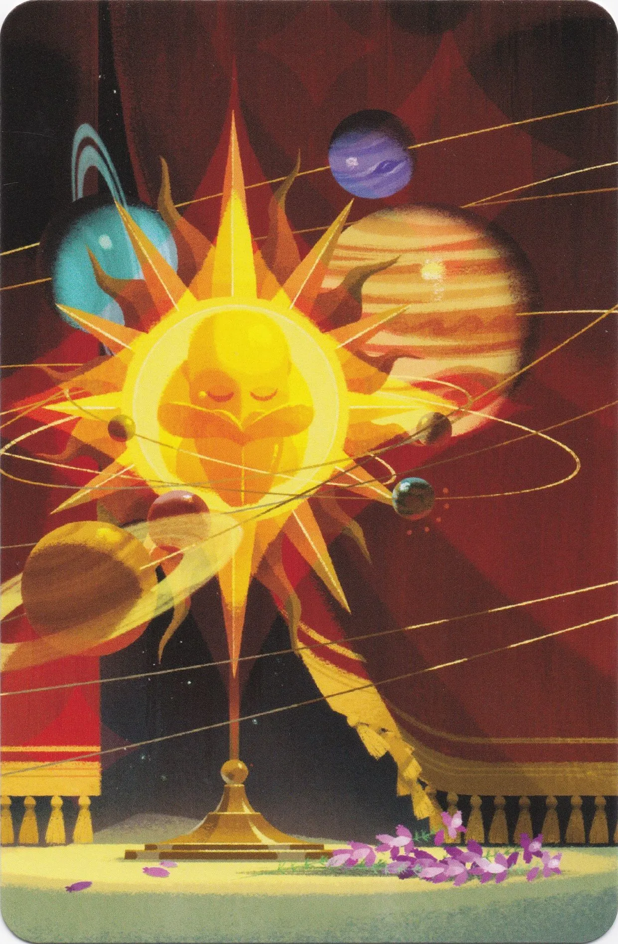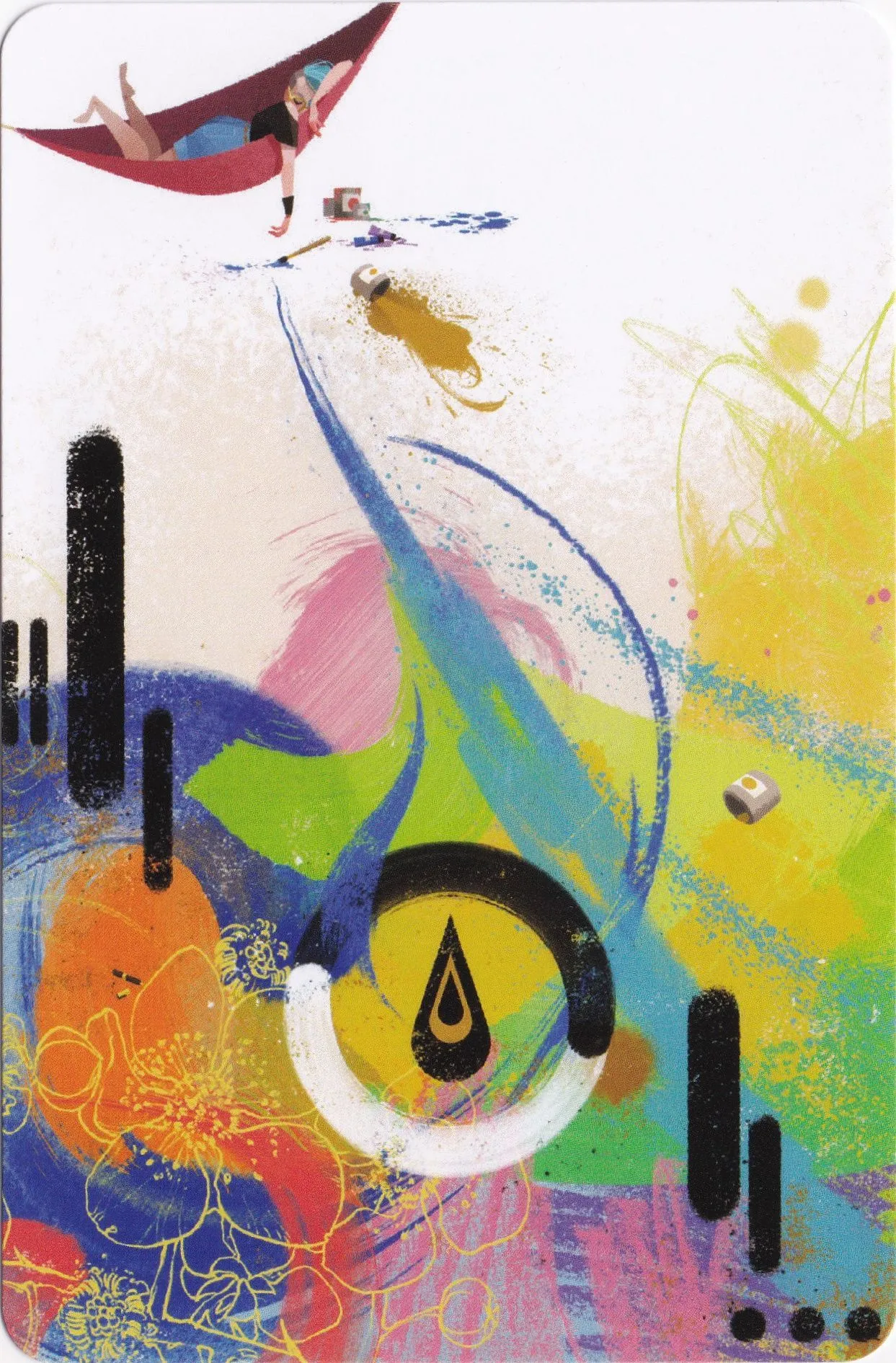 Game play in Dixit Odyssey matches that of Dixit: Each turn one player is the storyteller. This player secretly chooses one card in his hand, then gives a word or sentence to describe this card—but not too obviously. Each other player chooses a card in hand that matches this word/sentence and gives it to the storyteller. The storyteller then lays out the cards, and all other players vote on which card belongs to the storyteller. If no one or everyone guesses the storyteller’s card, the storyteller receives no points and all players receive two; otherwise the storyteller and the correct guesser(s) each receive three points. Players score one point for each vote their image receives. Players refill their hands, and the next player becomes the storyteller. When the deck runs out, the player with the most points wins.