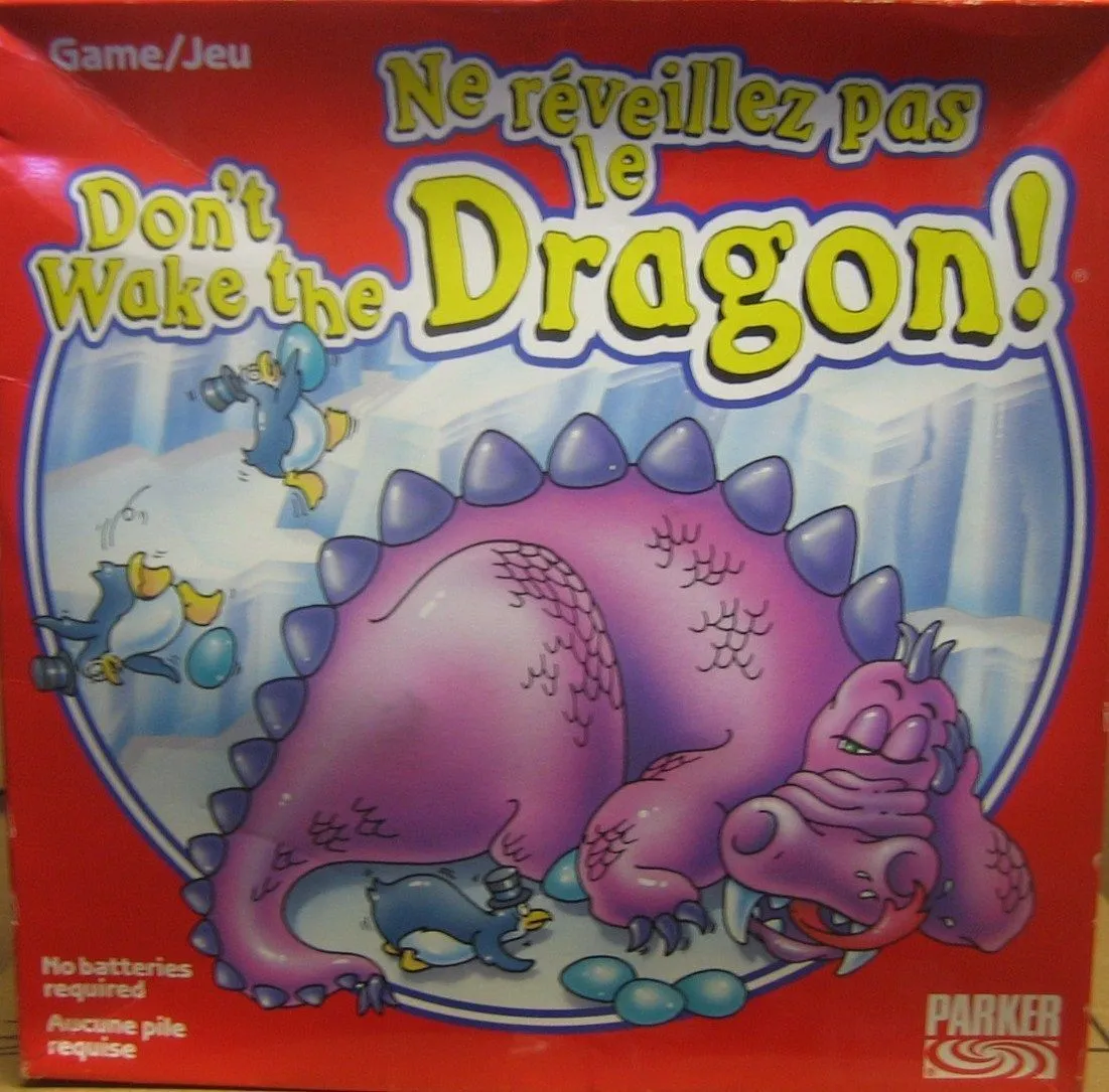 You move clockwise around the “board”, skipping occupied spaces. An egg space gives you your coveted egg. A dragon space means you depress the plunger and hope the ensuing shaking does not make your penguin fall off (it returns to the first available safe space before where it was) and lose its egg.