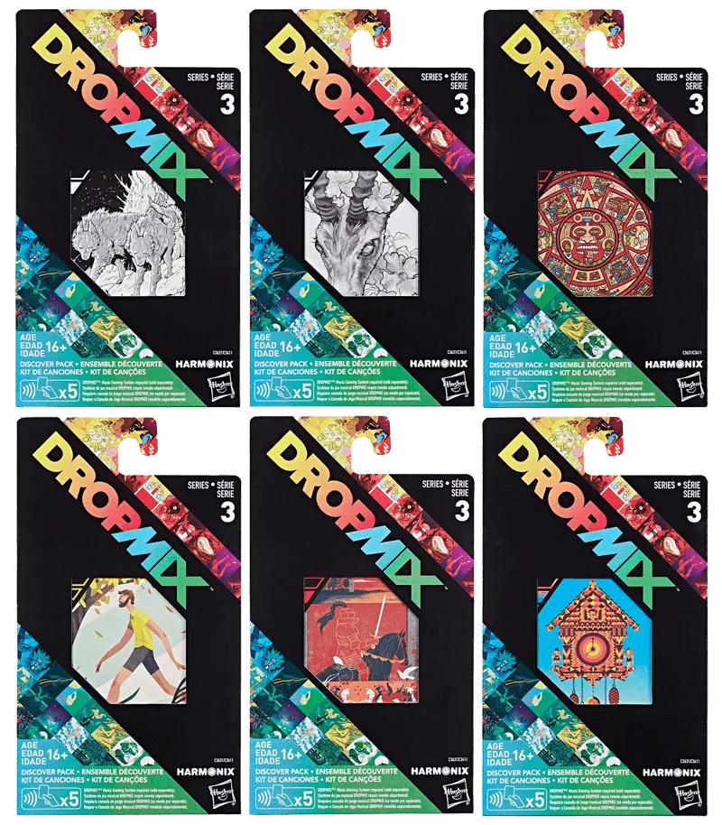 The DropMix Music Gaming System includes the DropMix board and 60 DropMix cards, and the DropMix app (discontinued Dec ‘22) controls the game. The included DropMix cards let you mix songs from top artists, including: Bruno Mars, Childish Gambino, Disturbed, Ed Sheeran, Imagine Dragons, Sam Hunt, Sia, The Weeknd, and more. There are also Discover Packs and Playlist Packs to expand the mix possibilities with more DropMix cards.