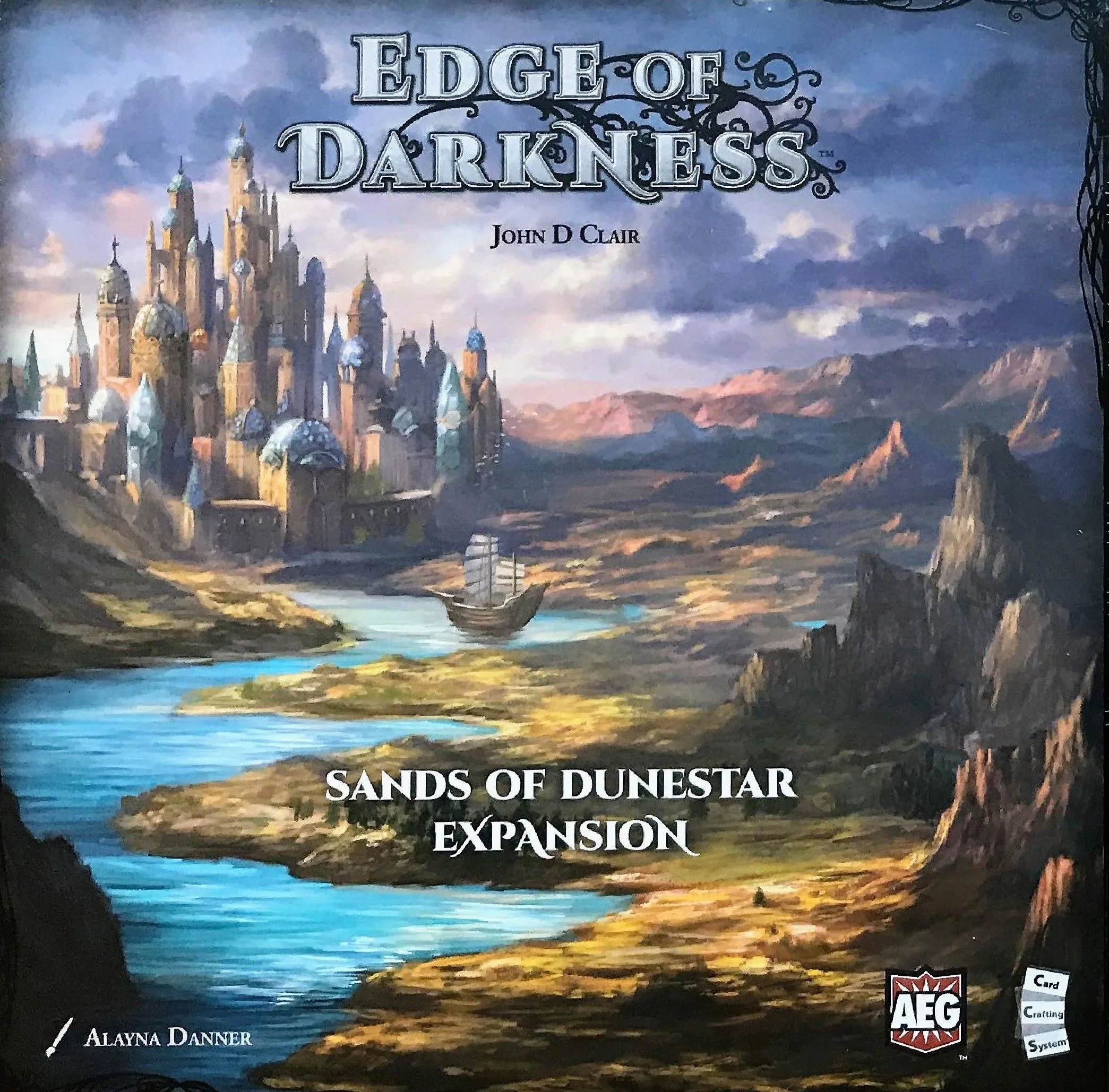 Edge of Darkness is the third Card Crafting Game from Alderac Entertainment Group designed by John D. Clair. Edge of Darkness combines Card Crafting, Worker Placement, shared deck-building, and a whole new Threat Challenge system in a medium-weight euro-style board game of 60 to 120 minutes for 1 to 4 players.