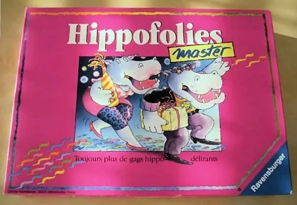 In this party game, players move one of two hippo pawns over an 8-shaped track.The fields they land on determine the task they have to fulfill (for this, they also draw a card) - in most cases, the other players try to guess the word/phrase that was intended: