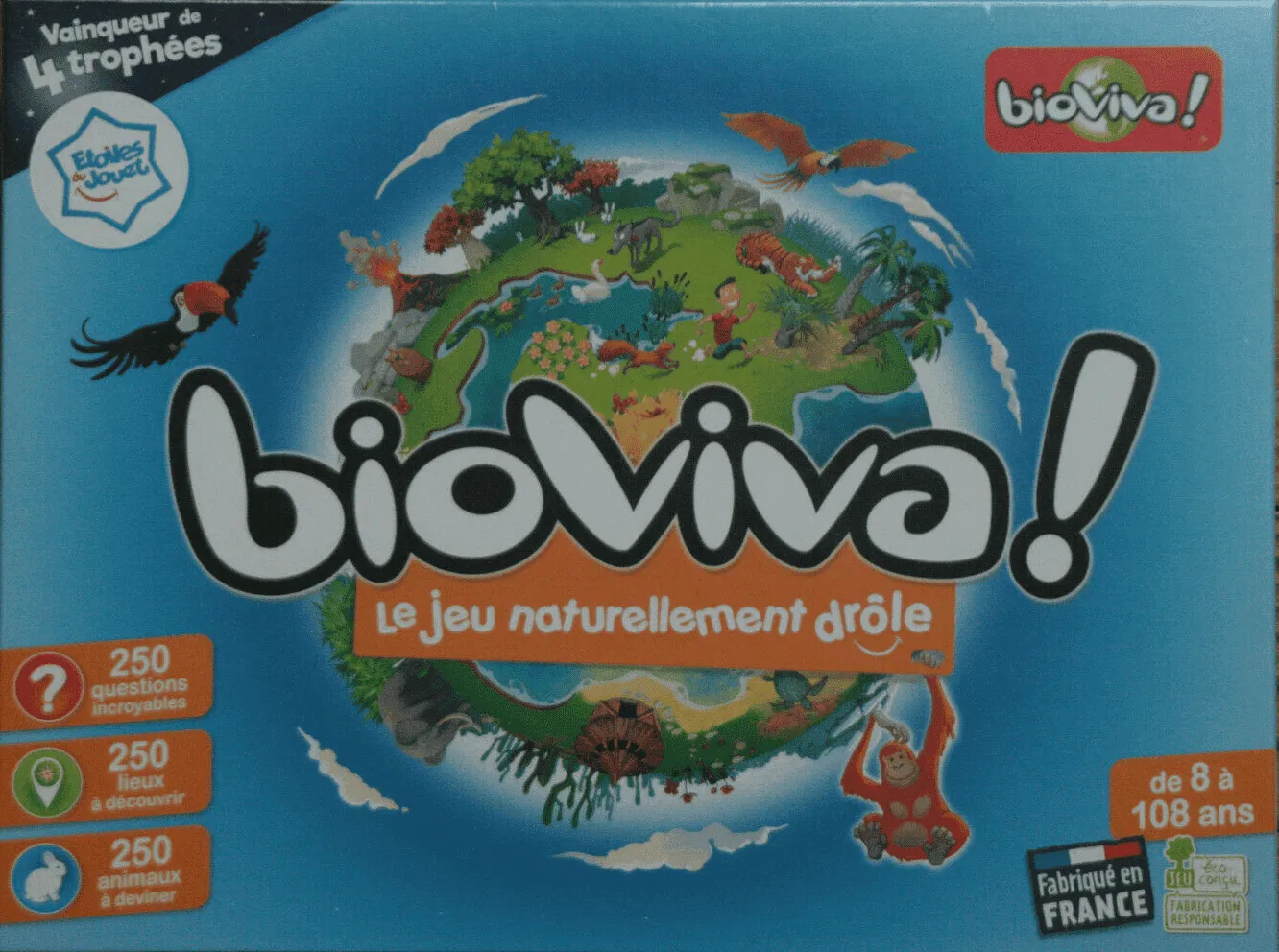 Un jeu familial incontournable mêlant questions-réponses insolites sur la Nature et défis amusants. Découvrir la planète et ses innombrables richesses devient un jeu d’enfant ! Comment jouer ? Partez à la découverte des merveilles de la Nature et de l’incroyable diversité de la vie sur Terre ! La règle du jeu est simple : il faut réussir le maximum d’épreuves proposées. 250 questions incroyables, 250 lieux à découvrir, 250 animaux à deviner… Connaissance, rapidité, bluff et déduction sont vos meilleurs atouts pour l’emporter dans les 3 épreuves de ce jeu familial, idéal pour apprendre en s’amusant.
