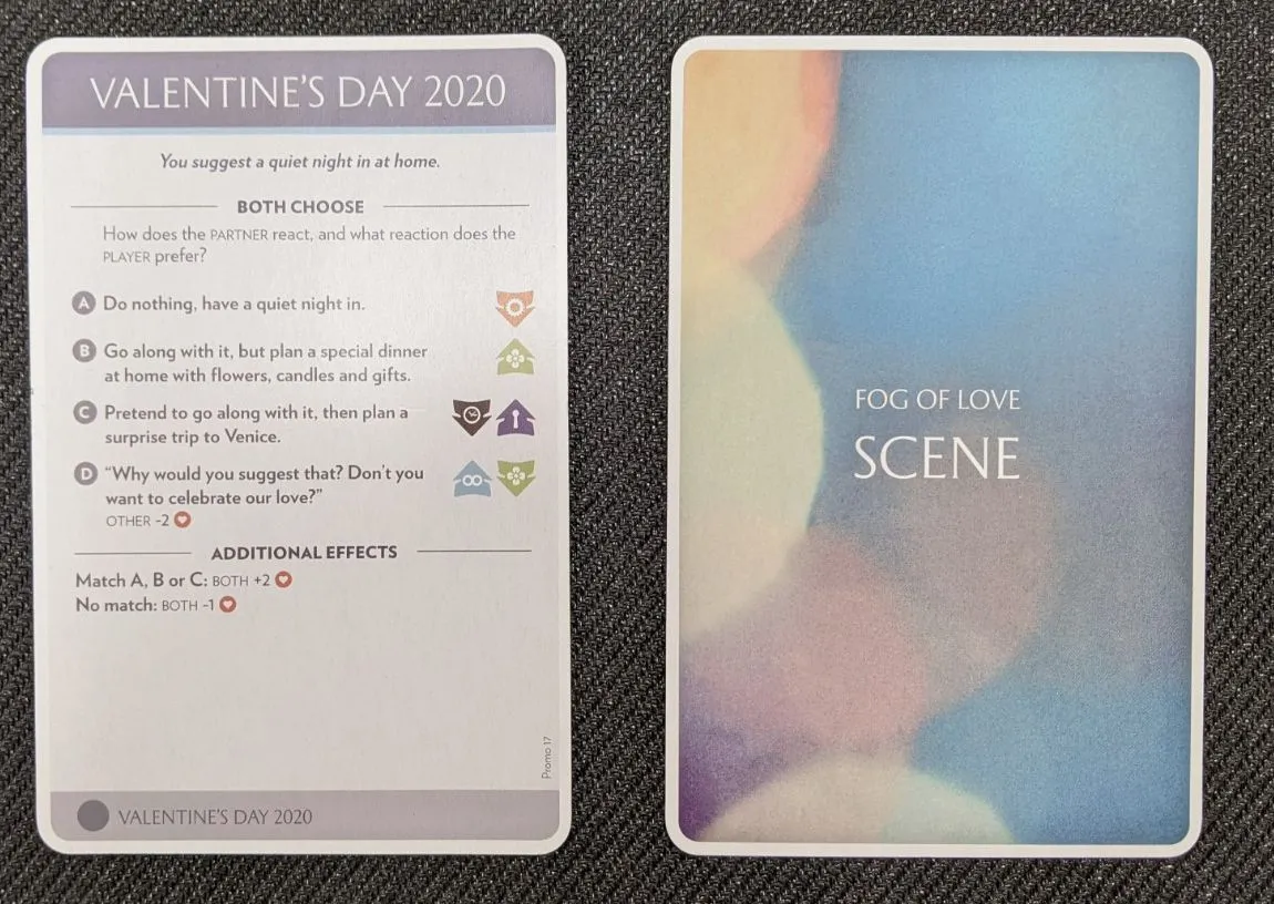 Comme dans une comédie romantique, vous allez incarner des personnages qui tombent amoureux et doivent faire face aux différents défis d'une histoire d’amour. Fous rires et situations cocasses seront au rendez-vous de ce jeu de rôle qui se joue à 2.