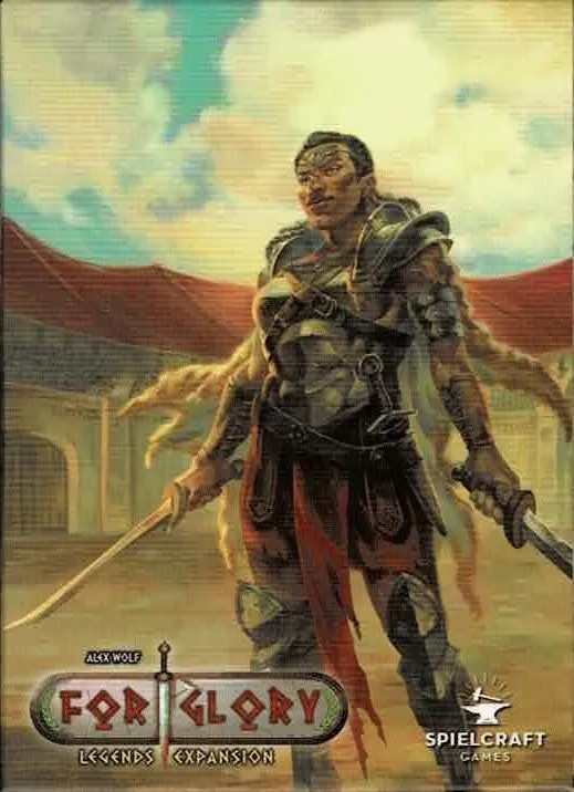 For Glory is a game of gladiatorial combat and deck building for 2 players. Players take on the role of gladiator school owners, or lanistas, in ancient Rome. The game utilizes a two-phase system for deck building and combat. During the Machinations Phase, players recruit gladiators, secure the support of influential patrons, increase their income, and train their gladiators in a multitude of tactics. When the crowd’s bloodlust becomes insatiable, the game shifts to the Arena Phase, during which players control their gladiators in various arenas to battle their opponents’ gladiators for glory. Each gladiator has a unique set of stats and a unique ability. Having the right synergies between gladiators often means the difference between death and glory. During arena battles, players also play tactic and reaction cards from their hand to support their gladiators, or turn the tides of battle. The first player to gain six glory by winning arena battles is the victor, and will be remembered for all time as the greatest lanista of Rome.