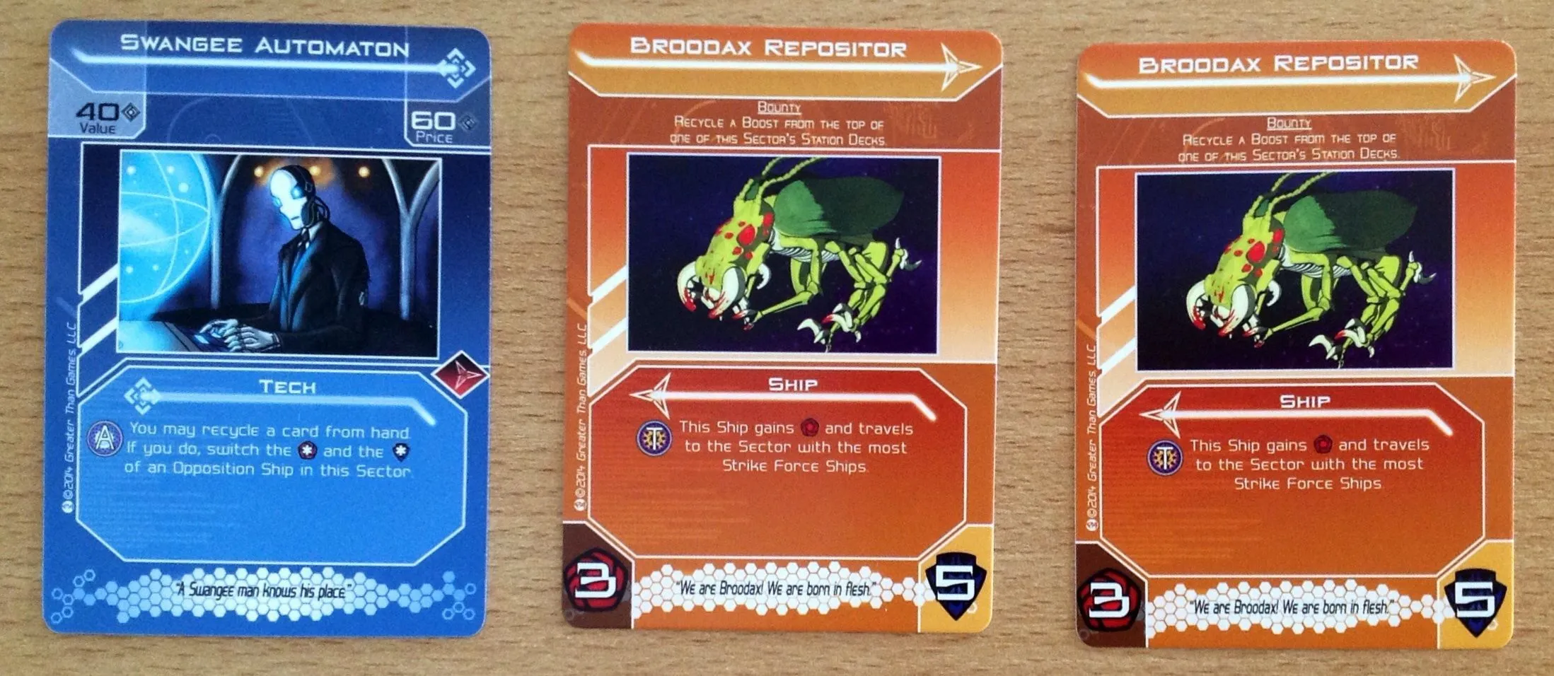 Galactic Strike Force is a cooperative, deck-building game in which two to six players each take control of a ship and a crew in defense of the galaxy! Dangerous opposition forces threaten to overrun the entire galaxy, and the players must not only build up their ships, but also work together tactically to stop them!