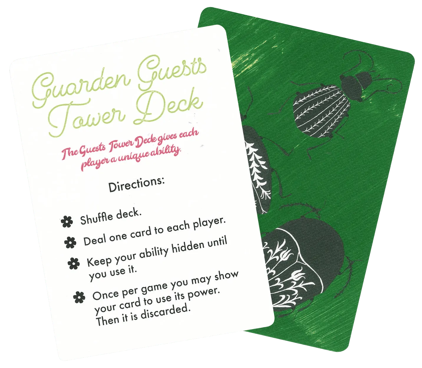 In Garden Guests, players compete to form a continuous path across a garden board that features beautiful paper cut art.