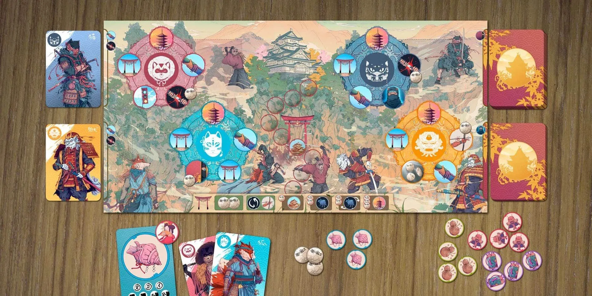 Genpei est un jeu de majorité dans un univers japonisant anthropomorphique. Les joueurs chercheront à accroître la taille de leur deck avec des cartes de Clans afin de gagner le plus d’influence possible sur les 5 clans du jeu ! A votre tour, vous devez jouer une des deux cartes de votre main. Chaque fois que vous jouez une carte de clan, elle active le marqueur de clan sur la roue des clans correspondante. Déplacez le marqueur sur l’une des deux cases adjacentes et effectuez l’action indiquée sur cette case. Vous pouvez effectuer une chaîne d’actions au cours du même tour : chaque fois que vous tirez une carte dans le cadre d’une action, son marqueur de clan est activé. Enfin, placez vos jetons d’influence pour obtenir le soutien des Maisons. Le joueur qui reçoit le soutien du plus grand nombre de Maisons (y compris la Maison de l’Empereur) est déclaré nouvel Empereur et gagne la partie.