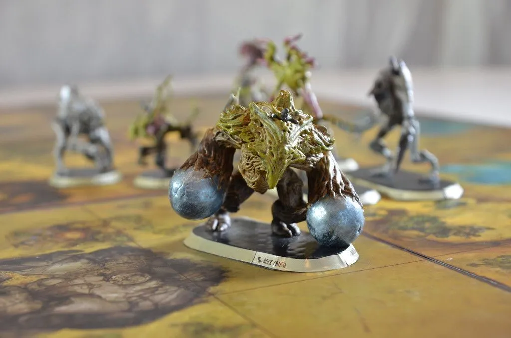 In addition to the Base Game Set and Golem Arcana app, there are several expansions which will enhance a player’s strategy by introducing new golems for more varied army building, as well as allowing new tactical and performance options through Relic cards, game tokens, and additional terrain tiles.