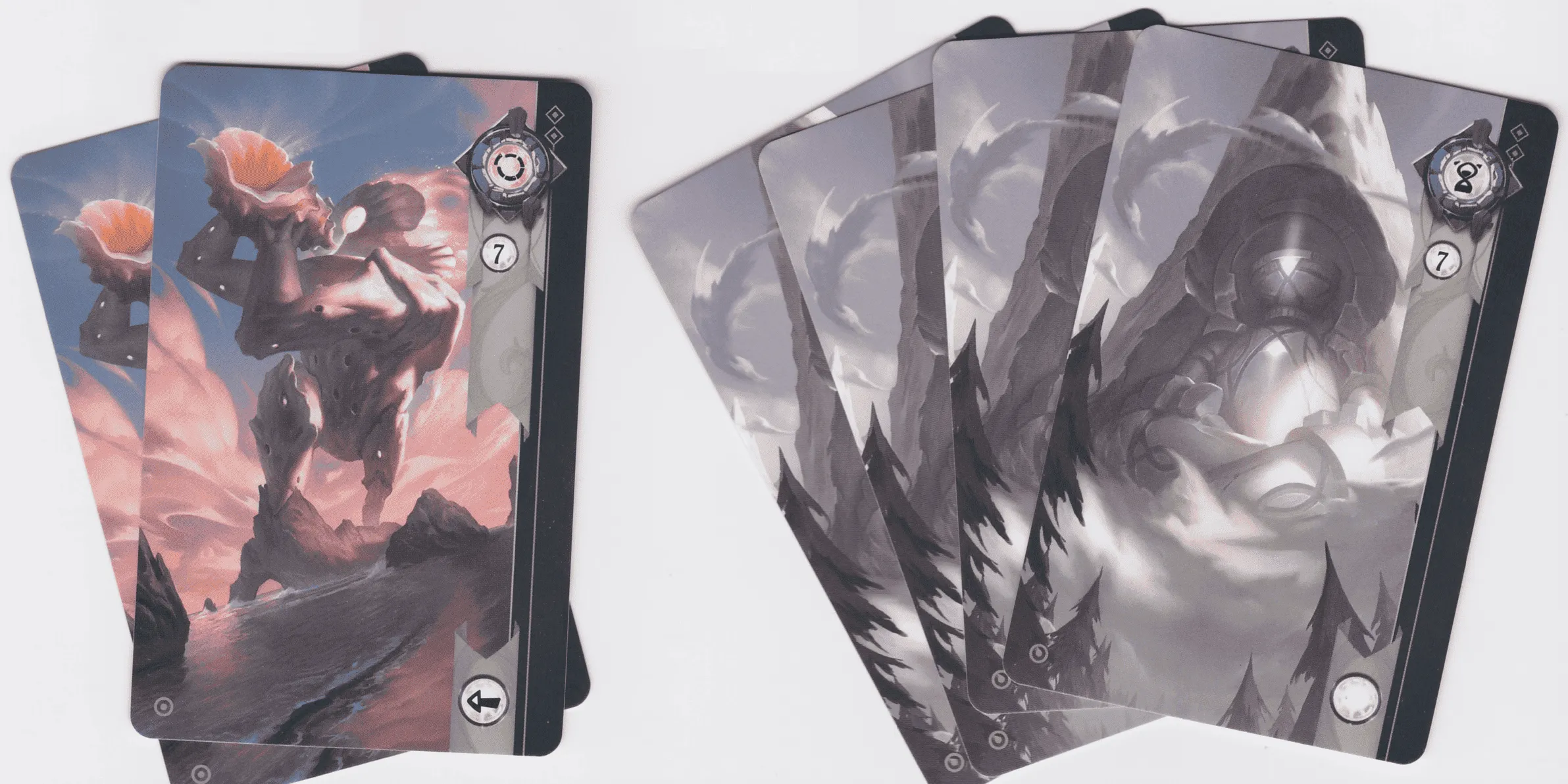 You will take alternating turns. During each turn you collect cards from the grid by using your Gems and choosing how to use the collected cards to maximize your strategy. There are 3 types of cards: Golem cards, Gem cards, Rune cards.