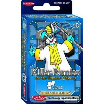 The setting for the new game is an ultimate race to build a bunny society on planet Earth. Killer Bunnies and the Ultimate Odyssey pits players against each other as they struggle to gain Civilization Points, by building cities and increasing their bunny populations. Players gain points by developing their own civilizations or by using zany weapons and hilarious scenarios to destroy their opponents.