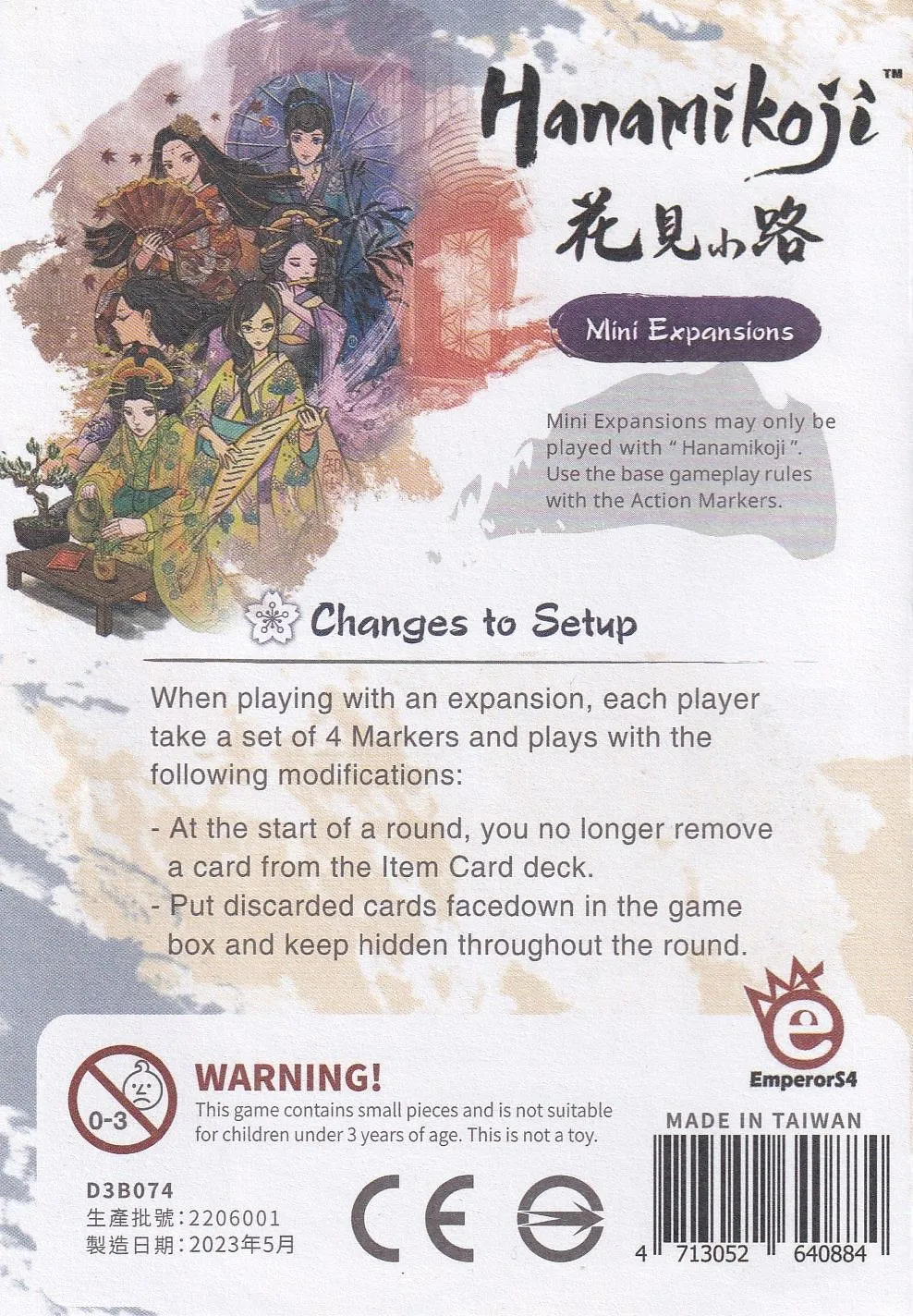 Bienvenue dans la plus célèbre rue des geishas de la vieille capitale, Hanamikoji. Les joueurs vont s’affronter pour gagner les faveurs des sept maîtresses geisha en récupérant des objets qui représentent leur performance. Grâce à des anticipations réfléchies et à des décisions audacieuses, vous pouvez gagner les objets essentiels en laissant de côté les moins intéressants. Serez-vous plus malin que votre adversaire pour gagner une majorité des faveurs des geishas ?