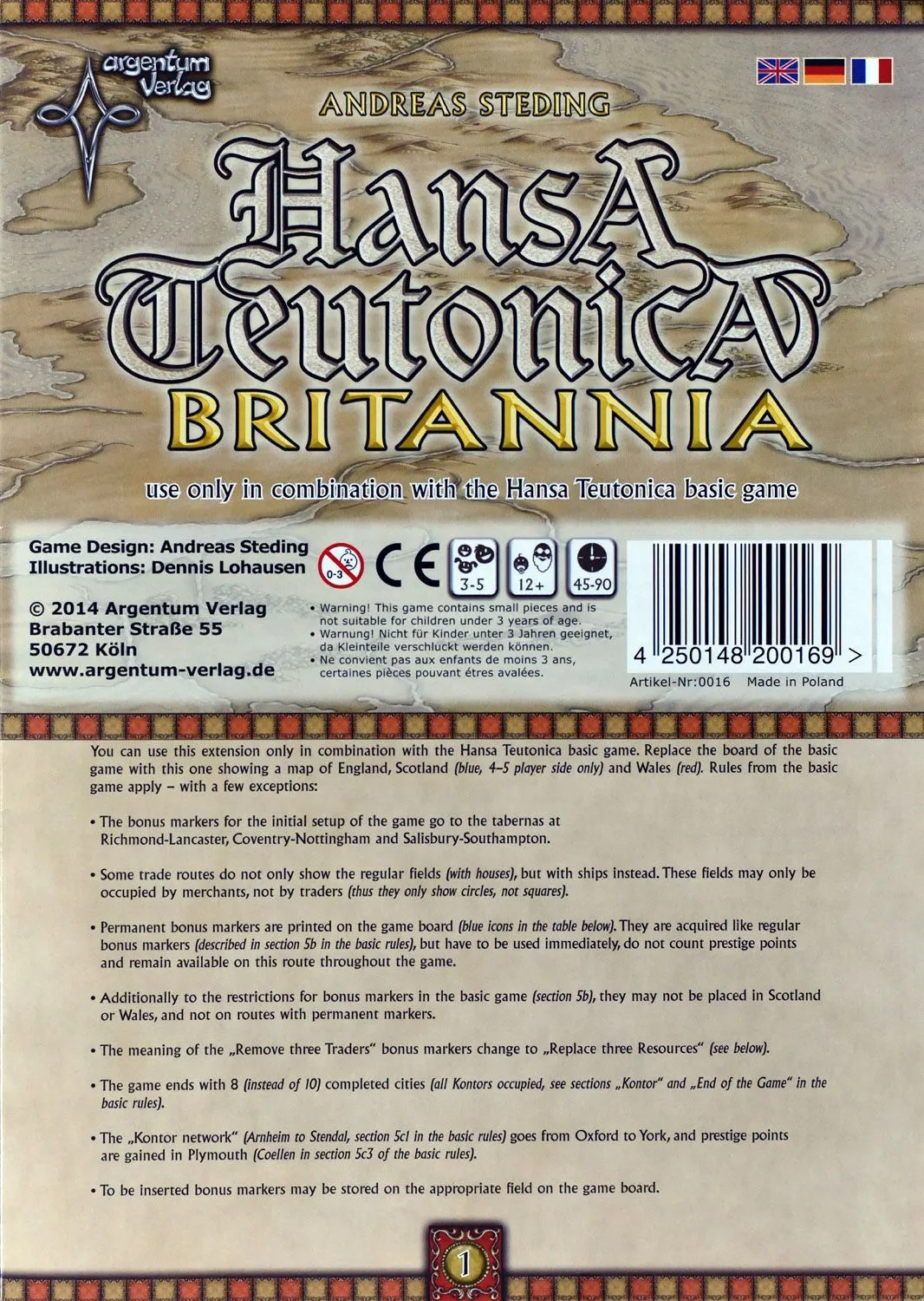 The players act as traders trying to get victory points for building a network of offices, controlling cities, collecting bonus markers, or when other traders use the cities they control. After controlling a line between two cities with your pawns, you can decide to build an office (and maybe also establish control and/or get a bonus marker) or to get a skill improvement from some of the cities.