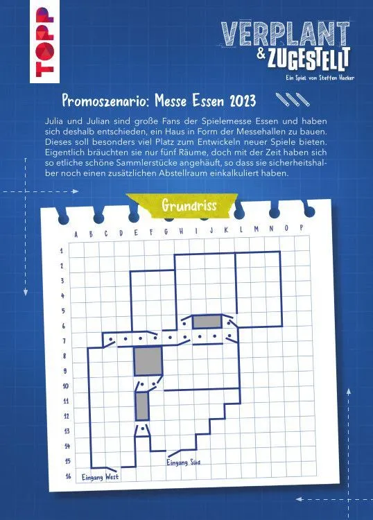 Vous faites vos premiers pas en tant qu’architecte d’intérieur, votre objectif est de satisfaire au mieux les demandes de vos clients en plaçant le plus harmonieusement possible tous leurs meubles dans leur logement. Pour cela, choisissez un scénario, munissez vous d’une feuille, et dessinez-y le plan d’étage, avec les pièces et les meubles à aménager. Mais attention, la compétition est rude, vos clients ne choisiront que le plus ingénieux d’entre vous. * Choisissez votre mission parmi les 25 proposées.