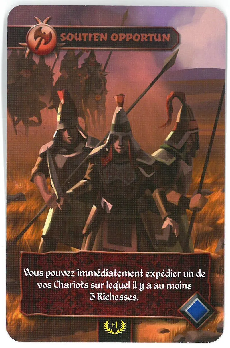 When one of the cube colors or one of the decks is empty at the end of a round, the game ends. Players score points for raids undertaken, treasure achieved, mercenaries paid off, and wagons delivered, and whoever has the most points wins! Card combos, drafting strategies, and resource management is what Huns is about, set in the universe of the mighty warriors of Huns.
