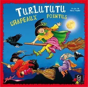 A children’s game in which five witch tokens in different colors are hidden under witches’ hats. On your turn, roll a die and pick up the hat that you think is hiding the witch of the corresponding color. If you are correct, roll the die again and repeat. If you are wrong your turn ends. The sixth side of the die shows an “exchange” symbol. If rolled, the player exchanges two witch hats on the board without revealing the hidden tokens and ends his turn.