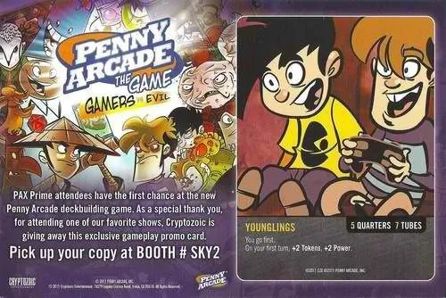 Penny Arcade: The Game - Rumble in R’lyeh is both a complete game and an expansion to Penny Arcade: The Game - Gamers vs. Evil. Players can mix the two sets together for the ultimate crazy ride through the sublimely bizarre world of the Penny Arcade web comic. Explore Gabe’s Gross Mouth, harness the dubious power of Bono Trask: Timesqueezer, and fall under the curse of TouchWeiners’ dark double: the Were-Swan.