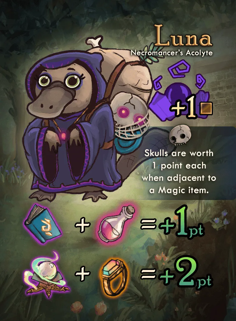 Continue to efficiently pack, optimize your bag space, reduce junk, and collect the most valuable bag for the adventurer you serve. Discovering Runes will allow you to manipulate cards in order to ensure a high scoring bag.