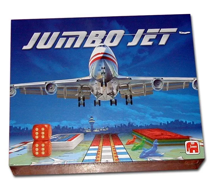 Game board 2 six-sided dice 6 playing pieces 6 flight arrows 6 x 8 route-right indicators 22 chance cards (red) 38 booking tickets (blue) ‘Jumbo’ play money in denominations of 1000, 2000, 5000, 10000, 50000 and 100000