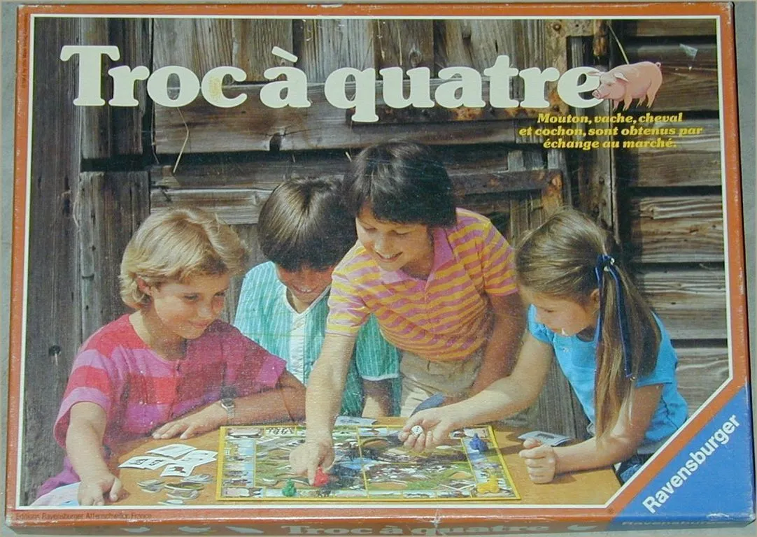 Contents: Playing board. 4 tractors/16 animals 60 cards/dice/rules