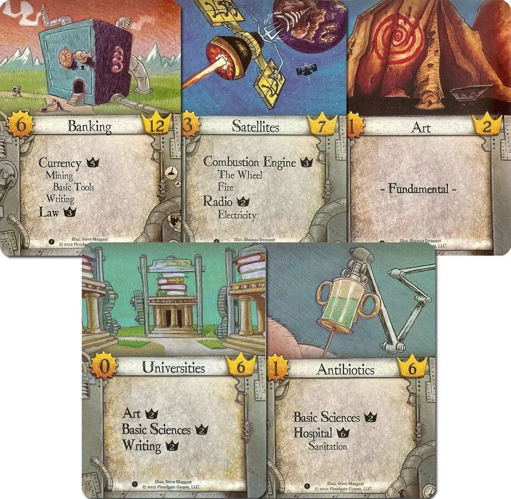 Since there are several copies of each technology, you may be able to preempt and eliminate an existing copy by playing yours earlier in the timeline! Be sure there is room for your new technology, though; each time-frame has a capacity equal to it’s distance from the present.
