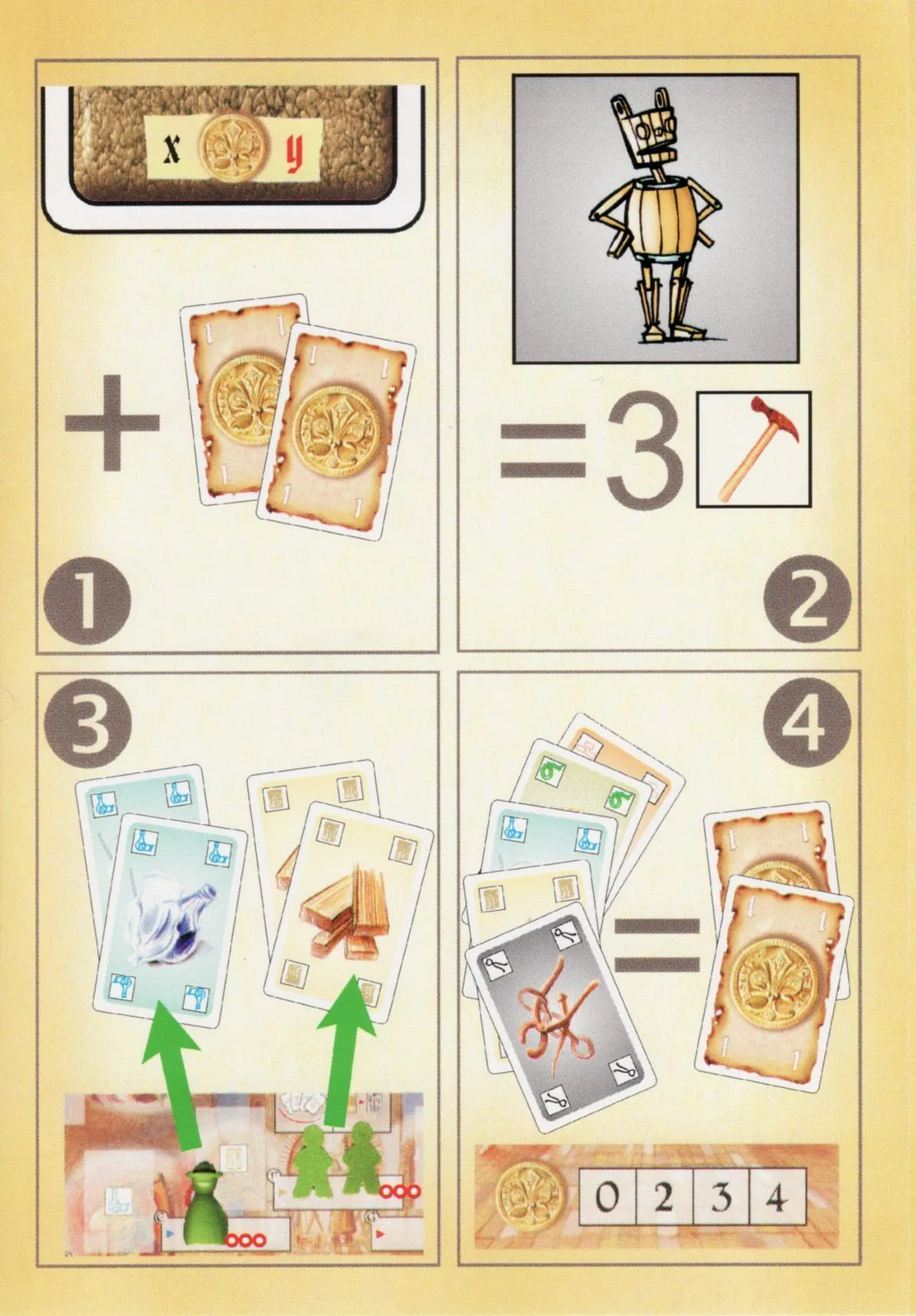 The key is planning your resources and production capacity to maximize the number of inventions you can make and therefore maximize the amount of Florins you can earn. The last two rounds of the game require extra careful planning because new resources cannot be acquired.